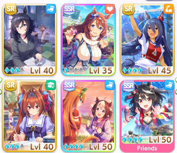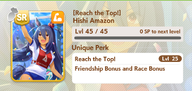 Hishi Amazon is a fantastic SR Power Card, and just a generally good Power card.As for Power Cards, Hishi Amazon’s SR, Vodka’s SSR, and Mihono Bourbon’s SRs are all good choices if available. These cards provide generally beneficial skills (some of which are positional), but also have helpful events and good training stats and benefits. At the end of the day, you want a deck with four Speed and two Power of your best available cards; as a final beginner note, more Unlock levels are better than fewer, meaning an MLB Eishin Flash SR will be better than a 0LB SSR speed card; keep in mind what you have, and what you can use, when building your deck. SSRs aren’t always better just because they are SSR!