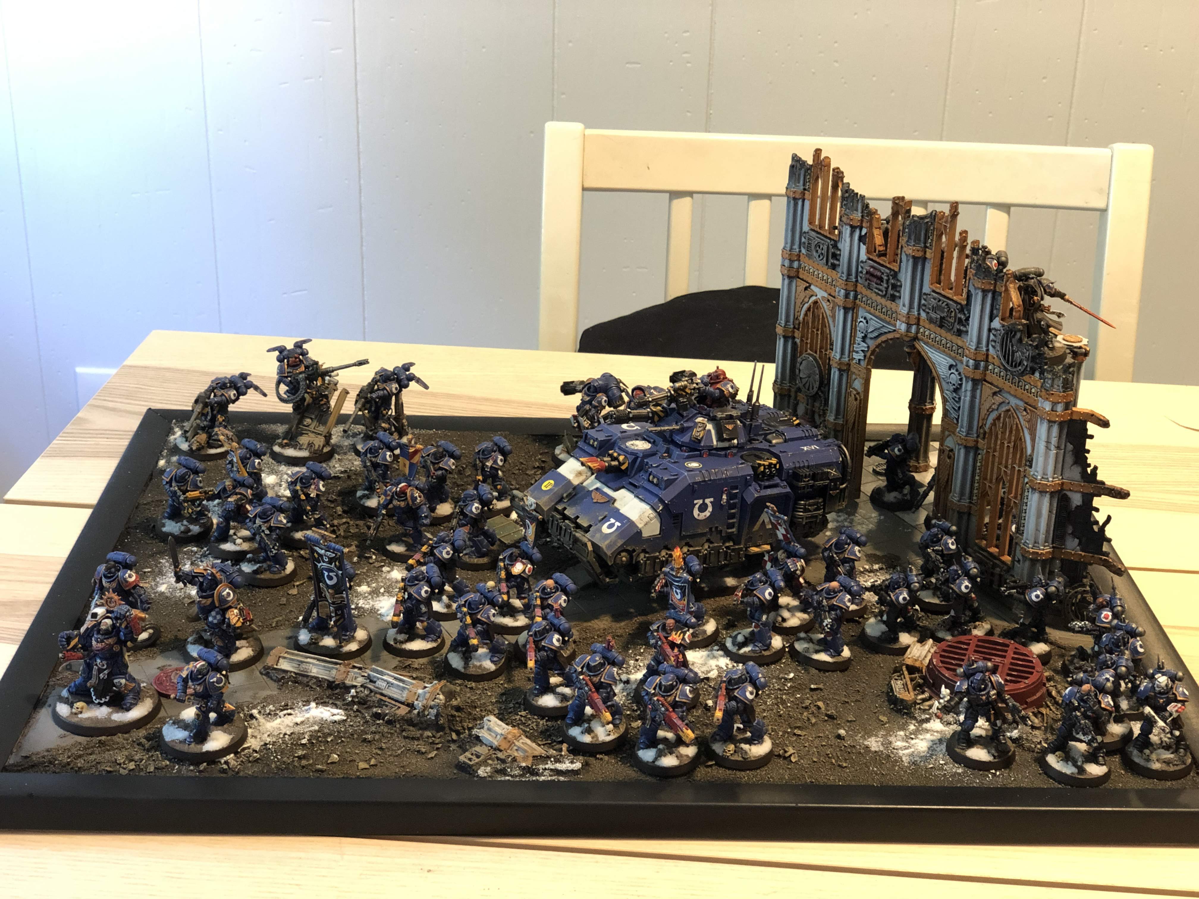 If you’ve seen pictures from any major event, Armies on Parade, or larger tournament, you’ll likely have seen some of the absolutely enormous display boards people build. Traveling with some of these things seems infeasible, and if you're going really big you're going to basically be limiting yourself to driving. That said, it's possible to bring a display board with you even when traveling by air.Rob: My display board for Kansas City (above) was mostly flat, but still far too large to fit in any suitcase I owned. So I packed it in bubble wrap, boxed it up, and checked it as oversized luggage, being careful to mark it as FRAGILE - the ticketing agents will also help out on this front by adding stickers of their own. When I built my display board for the Narrative in Atlanta, I purposefully built it to fit in one of my larger suitcases.
