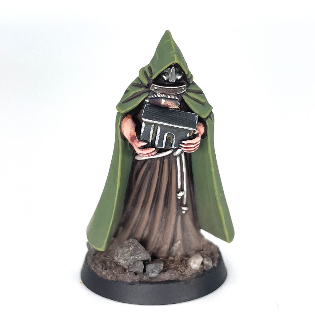 It is fitting that the Mendelist Ammo Monks have such an interwoven relationship with the Communicants, as this is precisely how they play on the tabletop (mostly). You’ll often see these little helpers close to the Anti-Tank Hunter (or the Anchorite Shrine), providing some nice buffs to ensure the Hunter hits its mark, or takes it out more reliably. Before we get into how the Monk buffs your Hunter, let’s look at the stats.