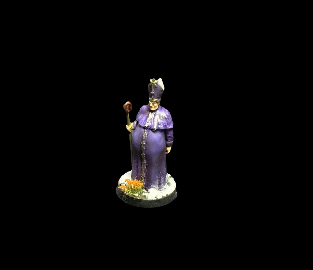 With a smaller initial Ducat limit for building out my Warband (in addition to 11 Glory Points), I knew my Warband was going to be much smaller than other starting Warbands. But that was okay, because I was 100% building this for vibes and aesthetics. I mean, nothing was going to be WYSIWYG anyway, so I just wanted cool, if inaccurate, models. By rule, this sub-faction has to have a Trench Cleric. I settled on the Azerai Confessor from Bestiarum Miniatures. Because of course the Pope would send an Archbishop-looking character to lead his war effort. So he sent Archbishop Marco Veneziano. This model not only set the vibe for the Warband, but also the color scheme.