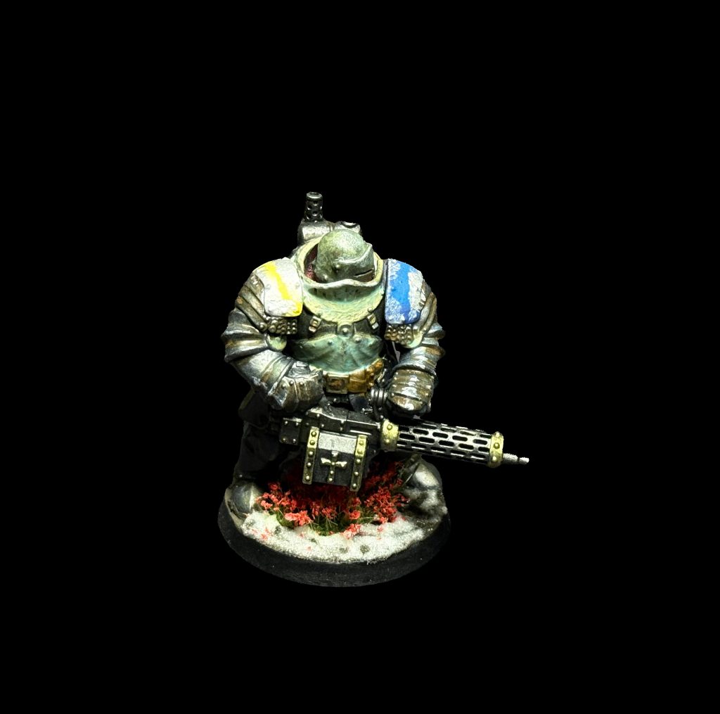 Marco Veneziano. Image: BeezerI knew from the outset that I wanted to use traditional pontifical colors for this Warband. This meant that since my Trench Cleric is the rank of bishop, he had to have a purple uniform. Other units would be a combination of the red and black traditionally associated with the Inquisition as well as splashes of blue and yellow worn by the Pope’s Swiss Guard. I used Citadel Macragge Blue and Vallejo Air Magic Blue for the blue parts, and ProAcryl Golden Yellow and Bismuth Yellow for the yellow parts. For the reds I used Scale75 Crimson, ProAcryl Bold Pyrolle Red, and then a unifying glaze through the airbrush of Scale75 Inktense Red. To highlight the black and give it some texture, I just stippled GW Kantor Blue on it. The lone purple was achieved by using Pro Acryl Royal Purple and then highlighted with Vallejo Model Color Blue Violet.