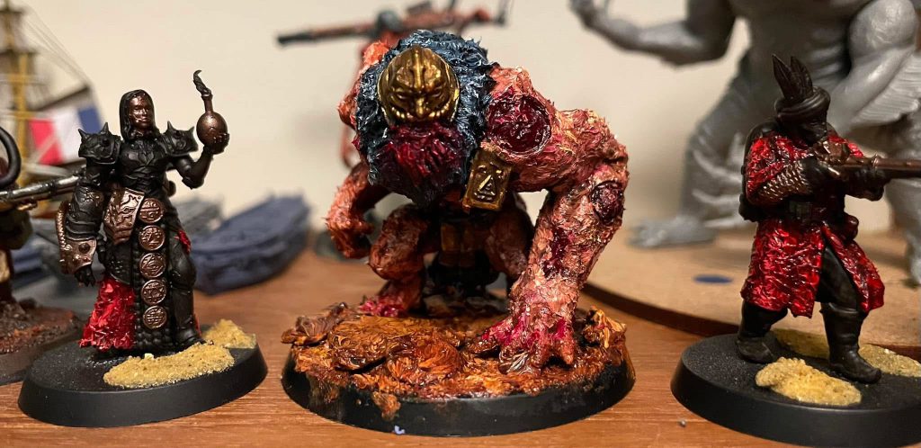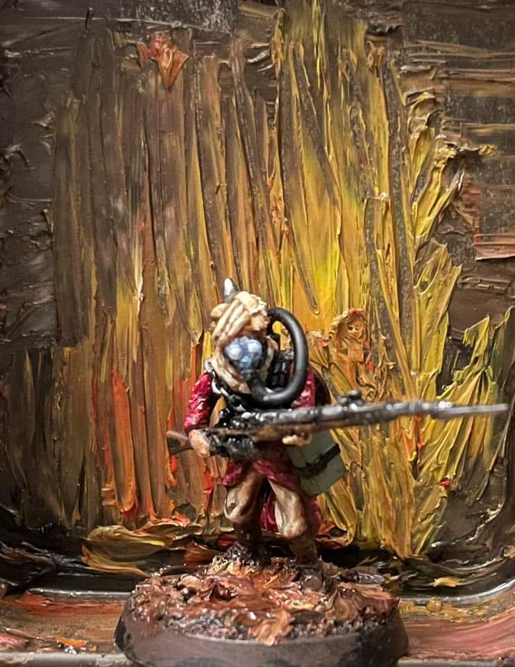 I'm by no means great at this, but for an experiment I think they've come out well. There are no real plans to expand, or add anything more to the warband unless I find a second alchemist model I really like the look of. I don't know if I'd paint like this again. I think it works, but it might only work within the context of Trench Crusade - it might not even work there. It was a very interesting experiment in deliberately breaking the rules of miniature painting, and I think taught me quite a bit about what works and what doesn't work in terms of texture, contrast and colour. If they don't get expanded out from here they'll go in a nice display case and be a testament to trying something new.If I can get the time to actually play Trench Crusade more than occasionally (my only game was a resounding defeat, the Bull instantly killed) there'll be some more to add - and I'll pick up the oils and the cocktail sticks again to get back into an impasto world.