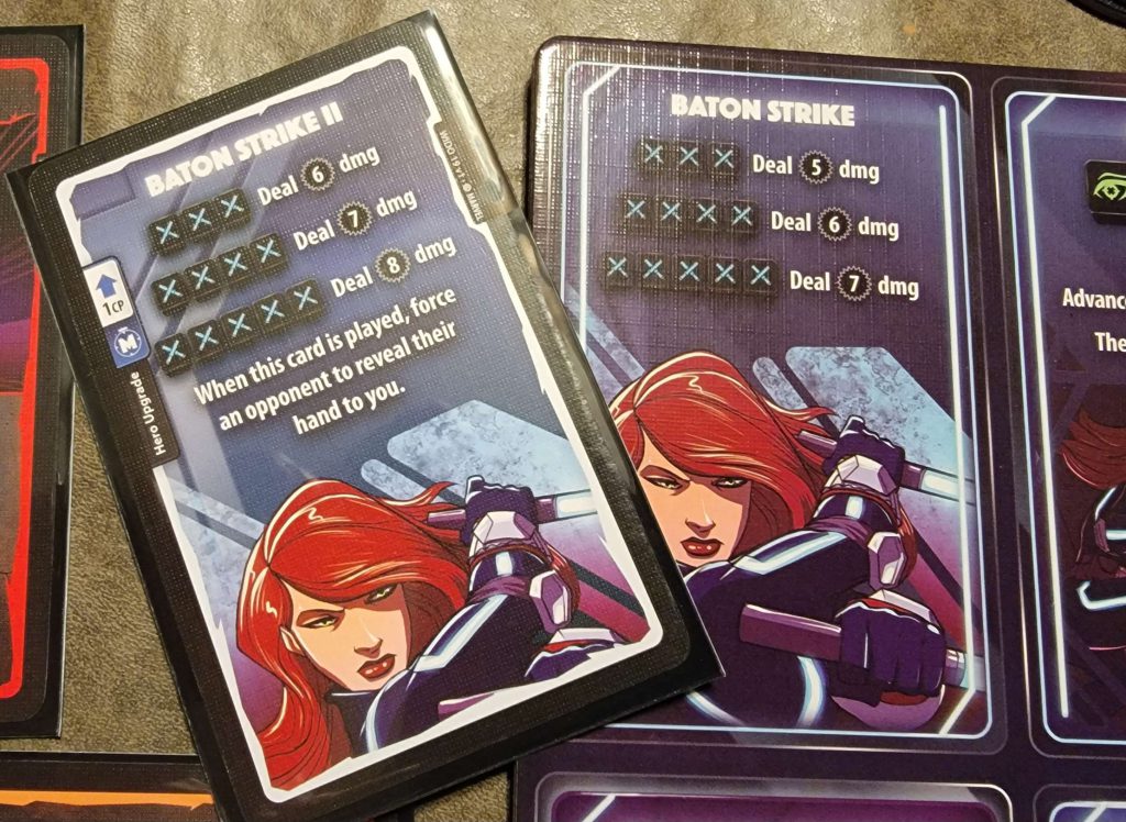 Black Widow's UpgradeThis is a very enjoyable game for me, and everyone I have shown it to. My competitive friend and I can go head-to-head and play the most complicated characters full throttle. Meanwhile, I can sit down to play while chatting with my less competitive friends, and in both instances the game feels balanced, often coming down to a narrow victory rather than a steamrolling. There is enough going on that you never feel bored, even when it is your opponent’s turn. If I had any critique, it would be that I wish I could draw more cards in most games. You start with only a few, and normally only draw one each turn, and while there are some cards that let you draw more or search the deck, they feel a little too few and far between.