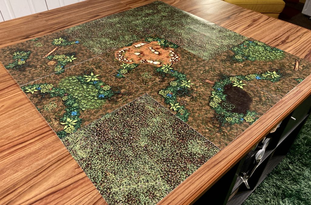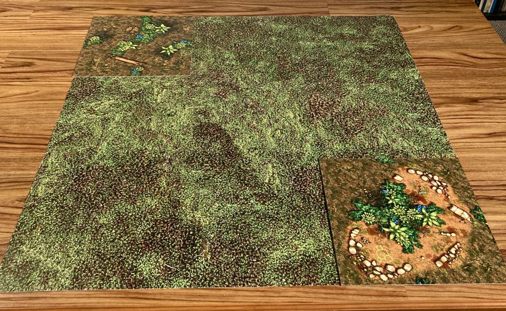 Here is an example start to a Twisted Jungle game, with just deployment zones revealed: