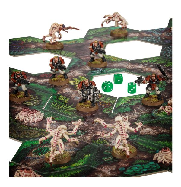 - Searching the jungle for the entrance to an underground temple or military base, after which models can descend to fight on a separate linked board.