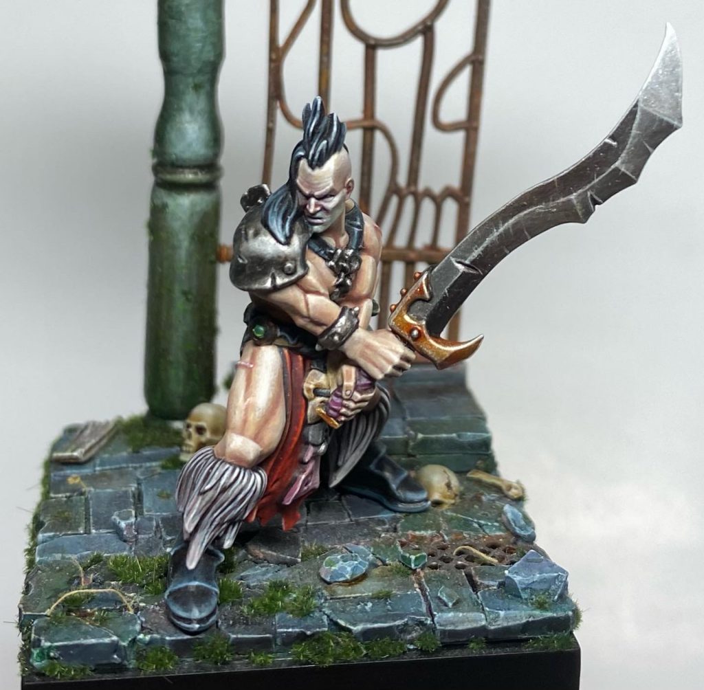 Credit - @MamikonPaintsIn AoS single I have a Barbarian, it's a pretty cool entry with some storytelling - it has been inspired by Max Faleij's winning entry from 2016. I have a Saruman, which I'm very happy with - even though that there's many amazing entries in the category, I think it still holds up pretty well.