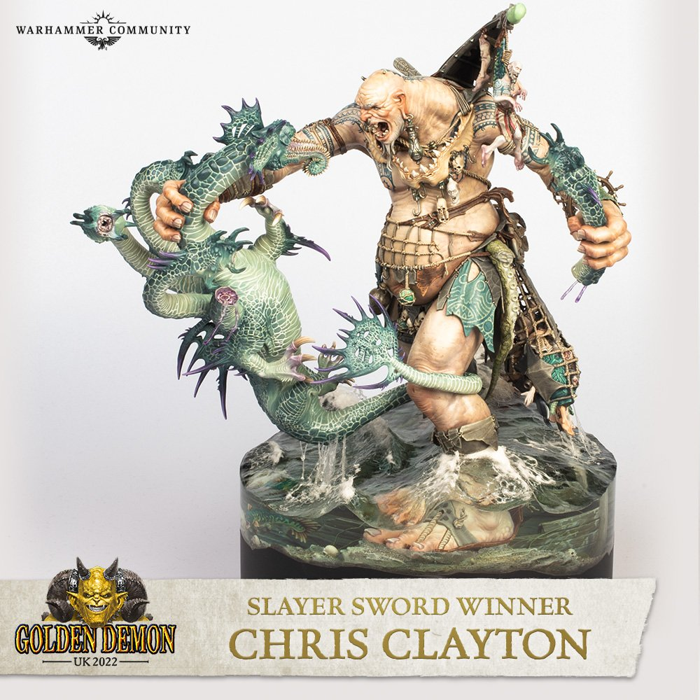 Chris Clayton, UKGD2022 Slayer Sword WinnerGH: First off, congratulations! It’s amazing what you've done today! What's it like to not only come back to Golden Demon after a two year break, but to win two Golden Demons and lift the Slayer Sword? How’re you feeling? CC: Yeah. Yes, it won't sink in now until I'm halfway down the motorway. It all feels a bit unreal actually! Firstly, it's brilliant to come back to Golden Demon after the break. Obviously we all know why that break was there and a lot of that, you know, the anxiety of that break for a lot of people because there wasn't anything to look forward to and knowing that there was gonna be a Golden Demon. I mean, it's a hobby and it's a little bit more for me - but knowing that there's gonna be something on the other side, it was a huge motivator. You're doing something for a reason, it has purpose, you know?