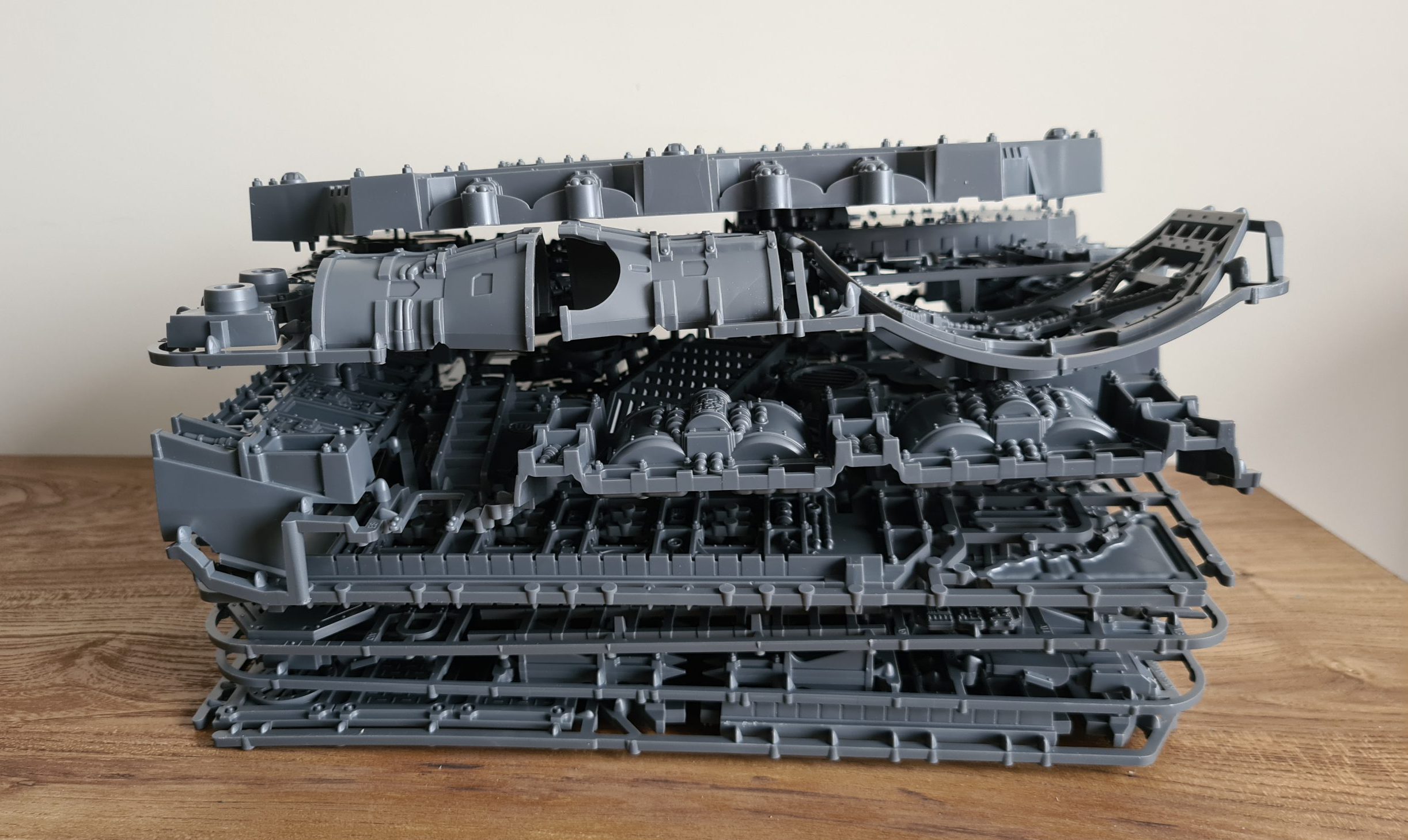 Moroch Terrain sprue pileThe bulk of the plastic contents in the box are terrain. Specifically, about 3/4 of the terrain from the recent Battlezone Fronteris - Nachmund boxed set - you get the landing pad, a hab bunker, some fences, a comms tower, and a satellite dish. For more on the terrain, you can find our review of the Nachmund terrain here.