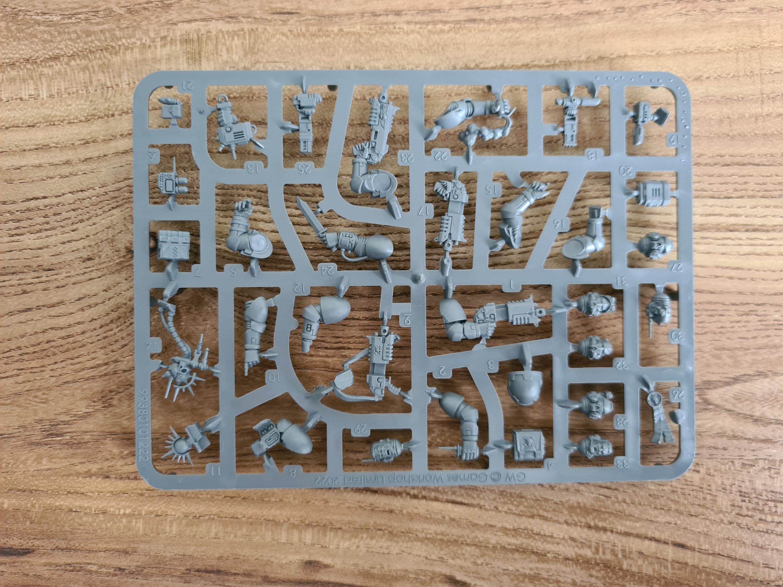 The Phobos Upgrade sprueAs well as the rules, the Kill Team Moroch box is full of shiny models. 10 of them are Incursors/Infiltrators for the Space Marines, with an upgrade sprue full of fun little greebles that fill some gaps in wargear added to their datasheet in Vigilus Alone, and those are fine if you're into such as "Space Marines." The real gold in this box isn't about the transhumans in power armour, though; the exciting bit is the new Traitor Guard - or as they are here, Militarum Traitoris.