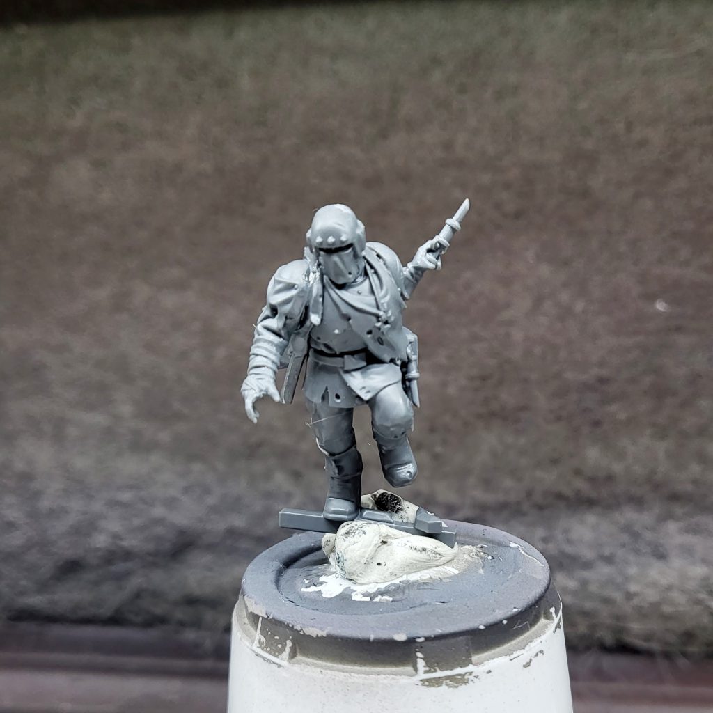 I love how this figure came out, but converting this base figure is an enormous pain. As the grenadier is a Kill Team option, I just left the other two in stock poses.