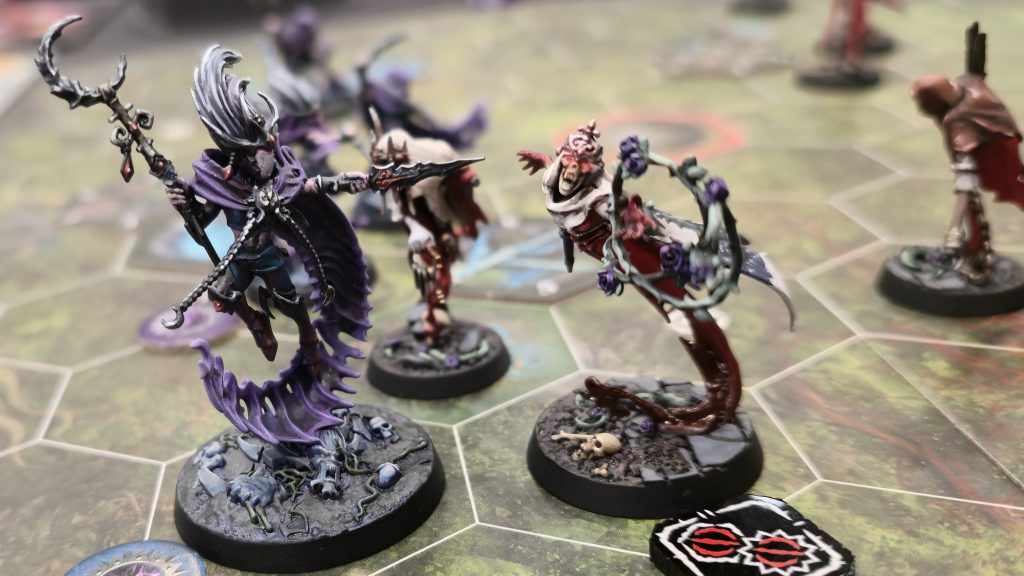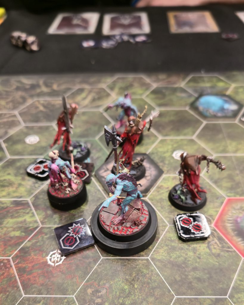 He brought Gnarlspirit Pack with Deadly Synergy and Raging Slayers. This was a blood bath of two highly aggressive warbands hitting each other. The first game swung very heavily in my favor while Derek battered me soundly in the second. The third was much closer, but ultimately Derek won with 23 glory to my 20 – this last match was the highest total glory scored by both players in any of my games.