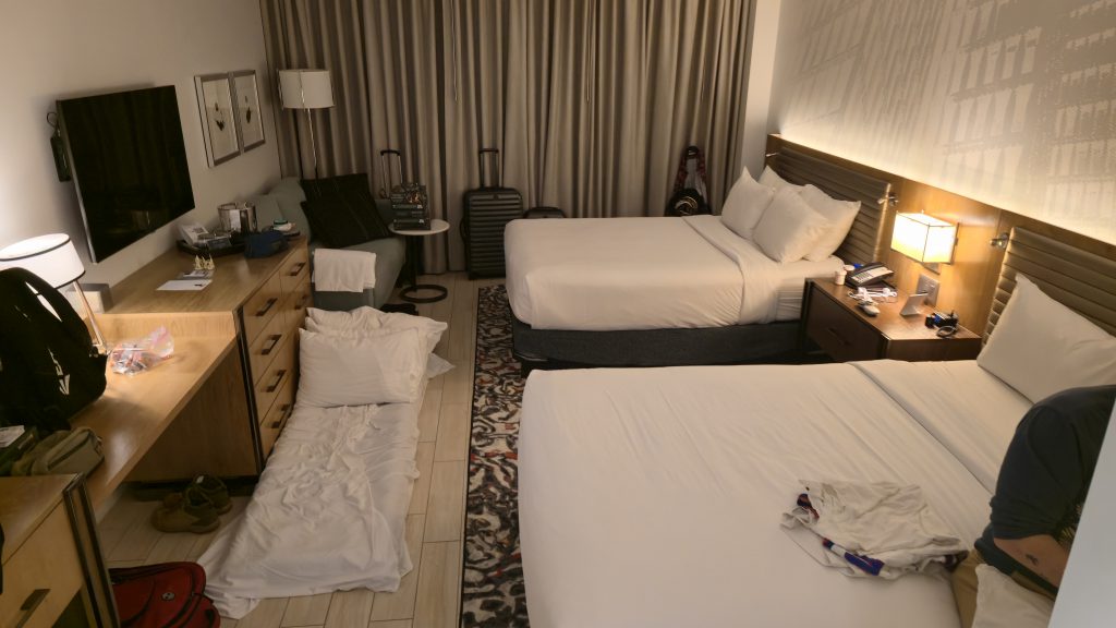 I was fortunate enough to be able to join a group of folks who already booked a hotel room across the street from the venue well in advance. The downside is that five of us guys were going to be sharing the room slumber party style. The upside is that it was relatively cheap when split that many ways. Craig (of GHO winning fame), Thomas "Saxthom" (part of the Underworlds Underground podcast), and Brian (of the What the Hex?! podcast) were my initial roommates, with Jesse (the winner of NYO and my most regular practice partner) joining us in the final hour. This did mean one of us wound up sleeping on the floor, so Jesse brought his camping air mattress and made a little nest out of it. Considering he did the best out of everyone in the room, maybe that's the way to go in the future.