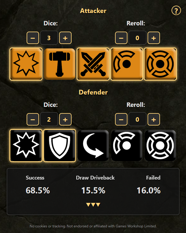 The excellent dice calculator created by Spinnerite and hosted at whudice.com.On the flight, I intended to pull up the awesome dice calculator that Discord user Spinnerite put together. The goal was to memorize a few common attack and defense profiles that I expected to come up in my games to help me make better choices (when should I use a 3 swords attack over a 2 hammer attack? How much value do I gain from getting surrounded over just flanked? etc.). Instead, I opened up the Root board game app and played through a few of the tutorials. I'm sure this won't come back to haunt me.