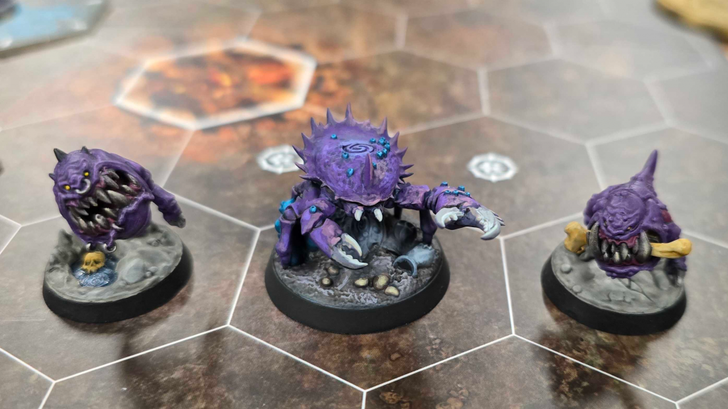 Duinclaw, Bonekrakka, and Gobbaluk hanging out after some games. Crab credit: @bourbonbrush; Squig credit: RJGames 11 & 12: Elathain's Soulraid BA/PP vs Gnarlspirit Pack BA/DS