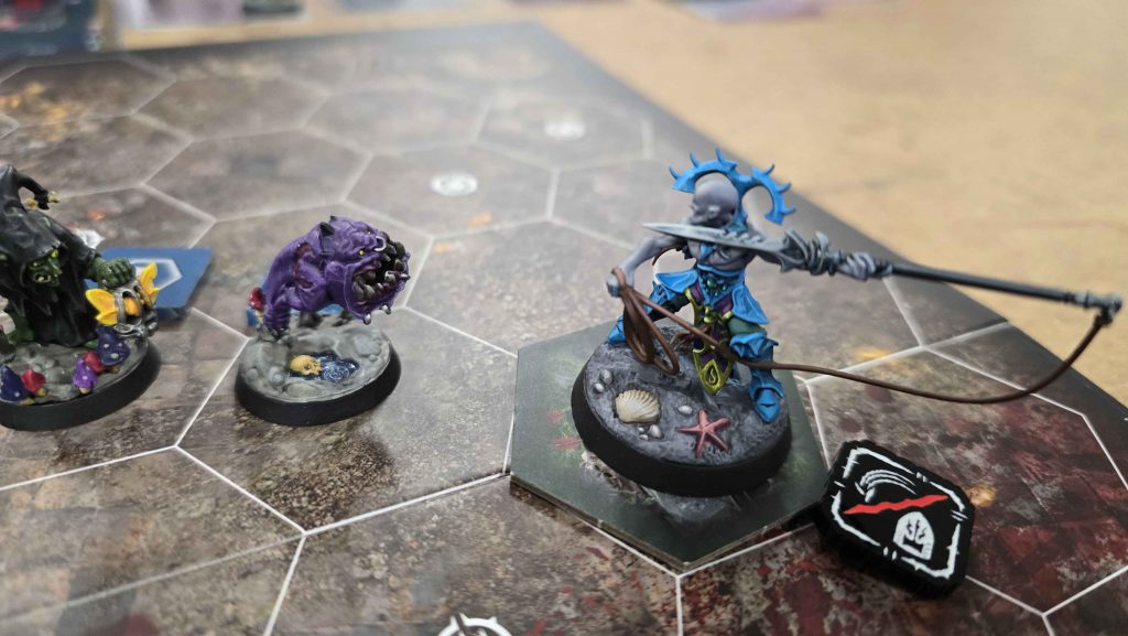 Hoo-boy. This series sure is netting me some of my worst games in my entire history of this game. I made a terrible mistake early game by charging Fuirann onto an Aqua Ghyranis token and Tammael onto a treasure token instead of swapping those around – it meant the Unassailable surge in my opening hand rotted there for 8 full turns because every time my opponent went after one of my fighters on a token, they were either driven back or slain. My opponent also expertly played around Unrelenting Massacre and Arena Mortis.