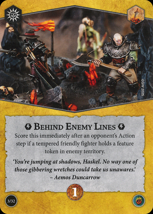 Credit: UnderworldsDB.comThis deck brings Behind Enemy Lines, another objective that gets easier to score with the introduction of AG tokens. The very nature of this objective requires you to invade the enemy territory anyway, so using an AG token to score it is even more tempting – gain one glory now, then potentially one more at the end of the round if your opponent can't stop you.