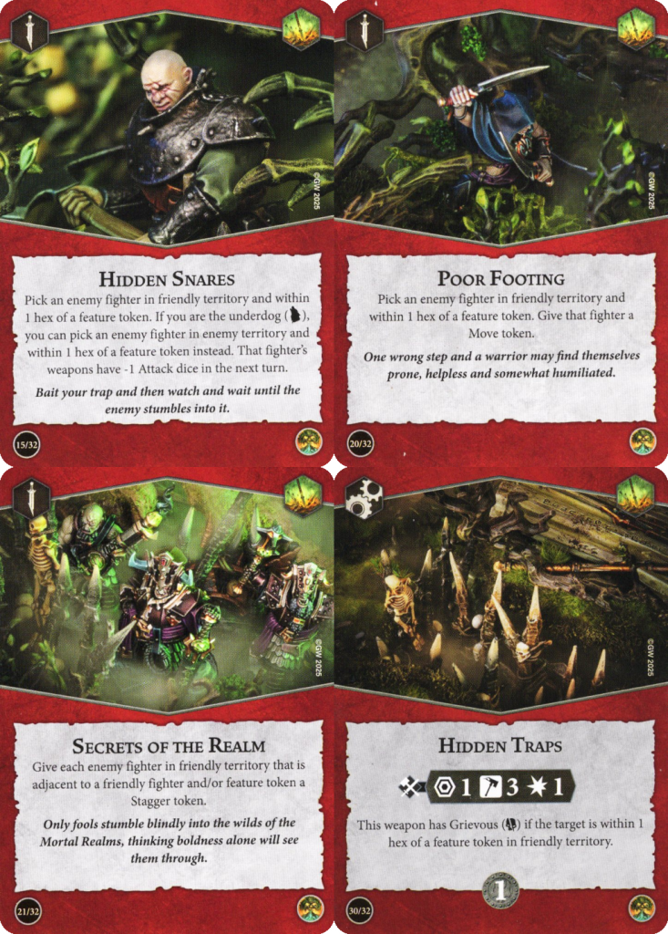 Credit: UnderworldsDB.comThe deck also has three ploys and one upgrade that care about enemy fighters being adjacent to feature tokens in your territory – Hidden Snares, Poor Footing, Secrets of the Realm and Hidden Traps can have a surprisingly large amount of reach if you assume there are three to four feature tokens on your side of the board. Each feature token creates a little seven-hex bubble and that results in far fewer safe places for your opponent than it seems at first.