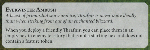 Credit: UnderworldsDB.comEverwinter Ambush doesn't technically fit in this list. In fact, it gets worse with the introduction of AG tokens. Thrafnir can't be placed in a hex with a feature token, so your opponent can place their own AG token to block Thrafnir from starting in a certain location. It's an edge case and probably not enough reason to get your opponent to move the AG token even closer to Hrothgorn himself, but it's worth keeping in mind when playing as or against the Mantrappers.