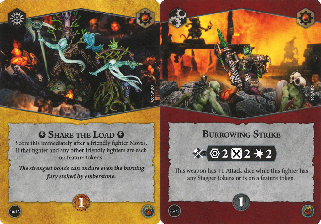 Credit: UnderworldsDB.comShare the Load is another commonly seen objective, but this one doesn't even care about delving. The fact that both sides are guaranteed to have an AG token in their territory means that even if you "win" the roll off and are stuck with only two treasure tokens to place, you will always have at least three feature tokens in your territory. Assuming your plan involves feature tokens in any way whatsoever (and given that this is in P&P, it will) then this easy to score objective becomes even more reliable with AG tokens in play.