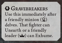 Credit: UnderworldsDB.comSpeaking of delve synergies, Zondara's Gravebreakers surely don't mind having more places to dig up. The aptly named Gravebreakers ability triggers when "a friendly minion delves" so it's perfectly fine to send Pikk over to a well of magic water and have him dig up Toyle. This gives the warband more places to be able to park the zombies to perform these useful delves, resulting either in raising slain fighters or drawing more cards.