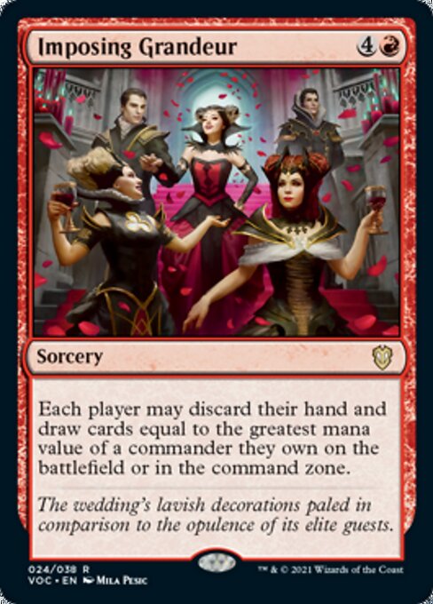1 Terminal Agony 1 Dark Withering 1 Murderous Compulsion 1 Fiery Temper 1 Thought Vessel 1 Talisman of Indulgence 1 Mind Stone 1 Lightning Greaves 1 Fellwar Stone 1 Call to the Netherworld 1 Anje, Maid of Dishonor 1 Drana, the Last Bloodchief 1 Olivia Voldaren 1 Falkenrath Celebrants 1 Wedding Security 1 Fiend of the Shadows 1 Olivia's Attendants 1 Defiant Bloodlord 1 Olivia, Crimson Bride 1 Olivia, Mobilized for War 1 Florian, Voldaren Scion 1 Captivating Vampire 1 Infernal Grasp 1 Liquimetal Torque 1 Cryptolith Fragment // Aurora of Emrakul 1 Bontu's Monument