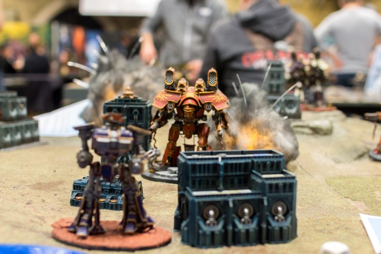 Adeptus Titanicus is a skirmish wargame that pits battlegroups of titanic bipedal warmachines, each carrying absurd amounts of firepower, in epic clashes with each other and, more often than you might expect, the surrounding structures and other scenery. It combines crunchy, tactical gameplay with a dash of unpredictability to create an experience that is as close to being reasonably described as “cinematic” as a tabletop wargame can get. You’ll carefully plan out your advance across the board, managing sight-lines and taking care not to expose your vulnerable flank to your opponent’s big guns, all the while working to set up that critical shot that will score you an engine kill. And even if you miss, you’ll probably blow up a nearby building or something.In addition to moving your models around the battlefield, each Titan comes with a Command Terminal that puts all the information you need to know in order to use it in one handy place, and also keeps track of the damage it’s taken to its head, body, legs, and weapons. As your Titan takes damage, it will slowly become less effective as its weapons disable, its locomotors seize up, and its crew are wounded and killed, until eventually an attack strikes home and it’s finally destroyed. But Titans don’t go down without a fight, and you’ll find that they can soak up an incredible amount of damage before they die. Games of Adeptus Titanicus combine a spectacular flow of play with a pleasantly crunchy ruleset, and you’ll quickly find yourself drawn into the flow of battle and left hanging on every die roll.