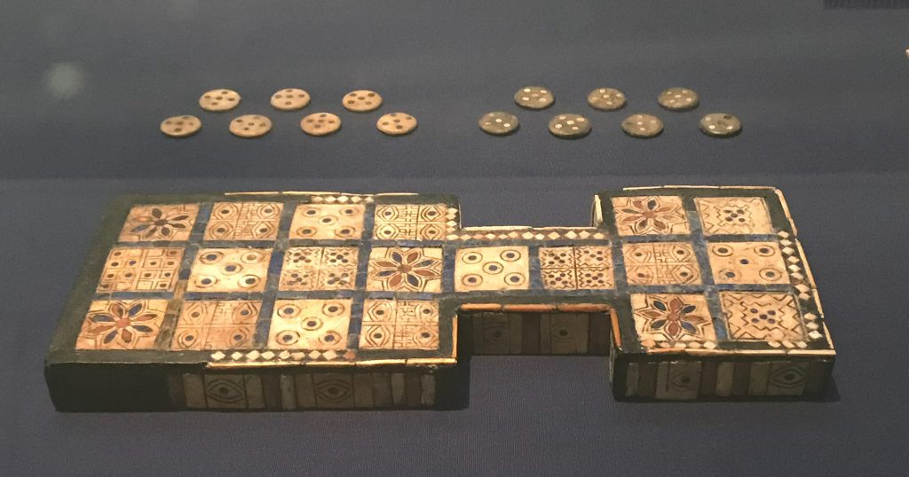 One of The Royal Cemetery Boards, from the British Museum. Photo: LenoonWhenever and wherever it originated, the Game of Ur seems to have been extremely popular. Versions have been found all over the middle east from Crete to the Indian Subcontinent, token and board designs varied hugely.