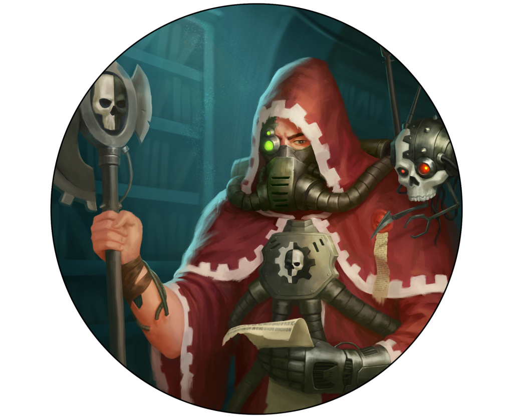 Logis Arcanus Rho-Beta-Sun is a high ranking Mechanicus statistician-prophet that along with Custodes Captain General Osiron led Torchbearer fleet Dauntless Intuition. He is prophetic in nature through algorithmic revelations, annoying to most, and often too useful to get rid of. His latest visions have led the fleet to Perplior with some of his prophecies hinting at another hidden purpose for their arrival. Upon arriving at Perplior, Rho-Beta-Sun took a place in the governor’s circle. Being the highest ranking Magi, he also temporarily displaced the local Dominus as head Logistician. His arrival has caused friction not only within the Mechanicus hierarchy, but also the Perplian elite, who are subject to offhand algorithmic prophecies portenting their fortune or doom.