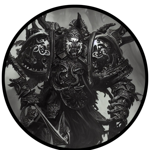 A consummate monster, Gardrukh seeks what all Sons of Malice traitor marines relish - fresh meat, for he and his brethren Heretic Astartes to sacrifice and eat in dedication to, and exultation of, their malevolent, outcast God of Chaos. His warband sees but one prize upon Perplior - a herd of humans and Xenos to be culled, defiled, and consumed. He leads his warband from a decentralized fleet of smaller ships, the largest of which is a Gladius-Class Escort Frigate, The Khün-Iddeg, housing Stormbirds, Thunderhawks, and various additional small craft. This decentralization allows the fleet to stealthily approach fresh meat, often falling upon Imperial prey-ships before they have recognized that the Astartes fleet identifiers transmitted to them are woefully out of date, and if verified, return as Excommunicate-Traitoris.