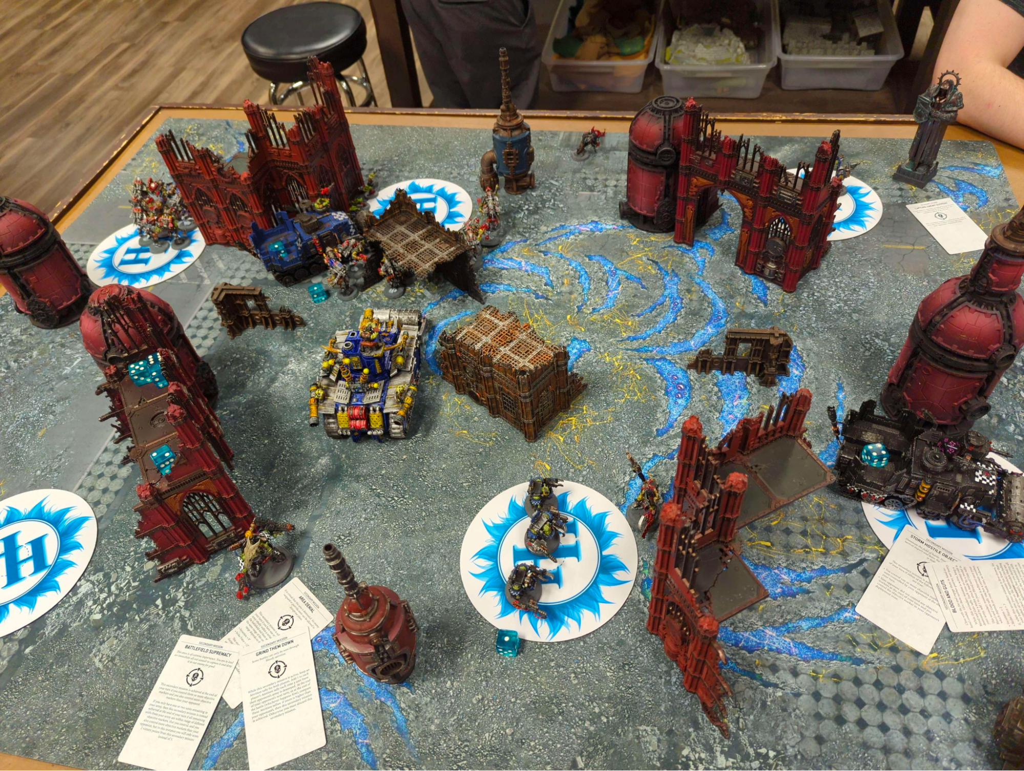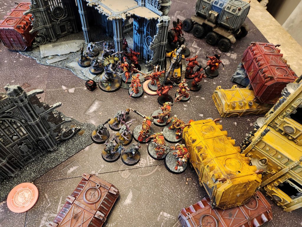 Elsewhere on the station a mercenary group of Corpse-Emperor Guard, World Eaters, perfidious Aeldari and a star god cult clash to uncover the lost secrets of the station.On the surface of our great Perplior Orks continue to ravage the outer countryside destroying world eater formations in the mountains.