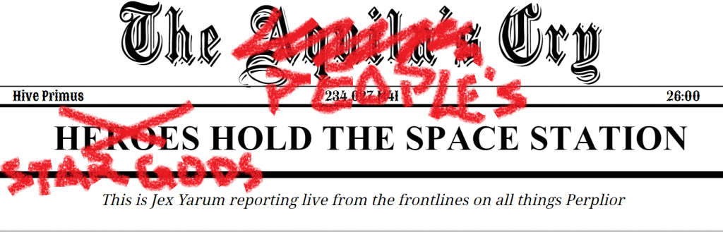 This is Jex Yarum, the people’s voice! In the hallowed halls of Space Station Pumilian Chaos forces continue to seek out foul warp energy in the inner layers of the space station. The false emperor’s forces of the Torchbearer Fleet Dauntless Intuition fought against the glorious Star Gods and foul World Eaters and chaotic forces of the governor's own treacherous elite guard.