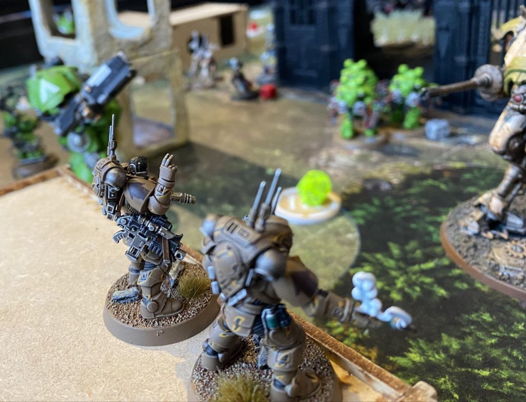 Scarab Occult Terminators from the Disciples of Memnos engage a twisted Knight Tyrant in the outskirts of Miltner’s Docks. Photo: James R.