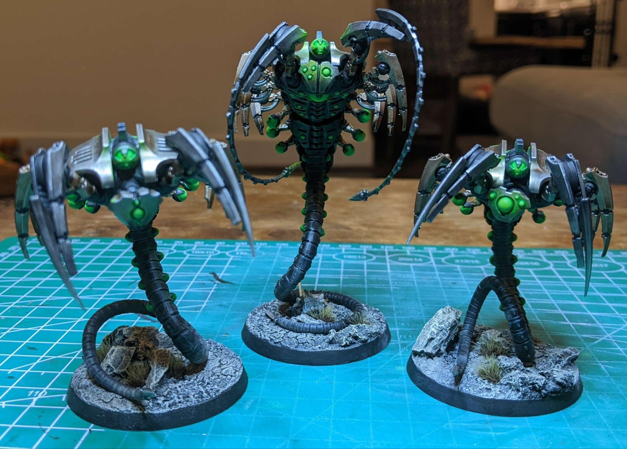 Newly awakened Canoptek Wraiths. Photo: Chris W.The Espern’s Drift Miners have fared much better than the formal Imperial forces, with the Trans-Hyperion Alliance retaking the refinery of Algol VII from Makarios’ Shock Troops. The hardy miners of the Departmento Laborum and their completely normal number of arms have not made an appearance in this fight, perhaps judging it too risky to attempt to leave the heavily patrolled Kephistrone dock complex to reach Algol VII.