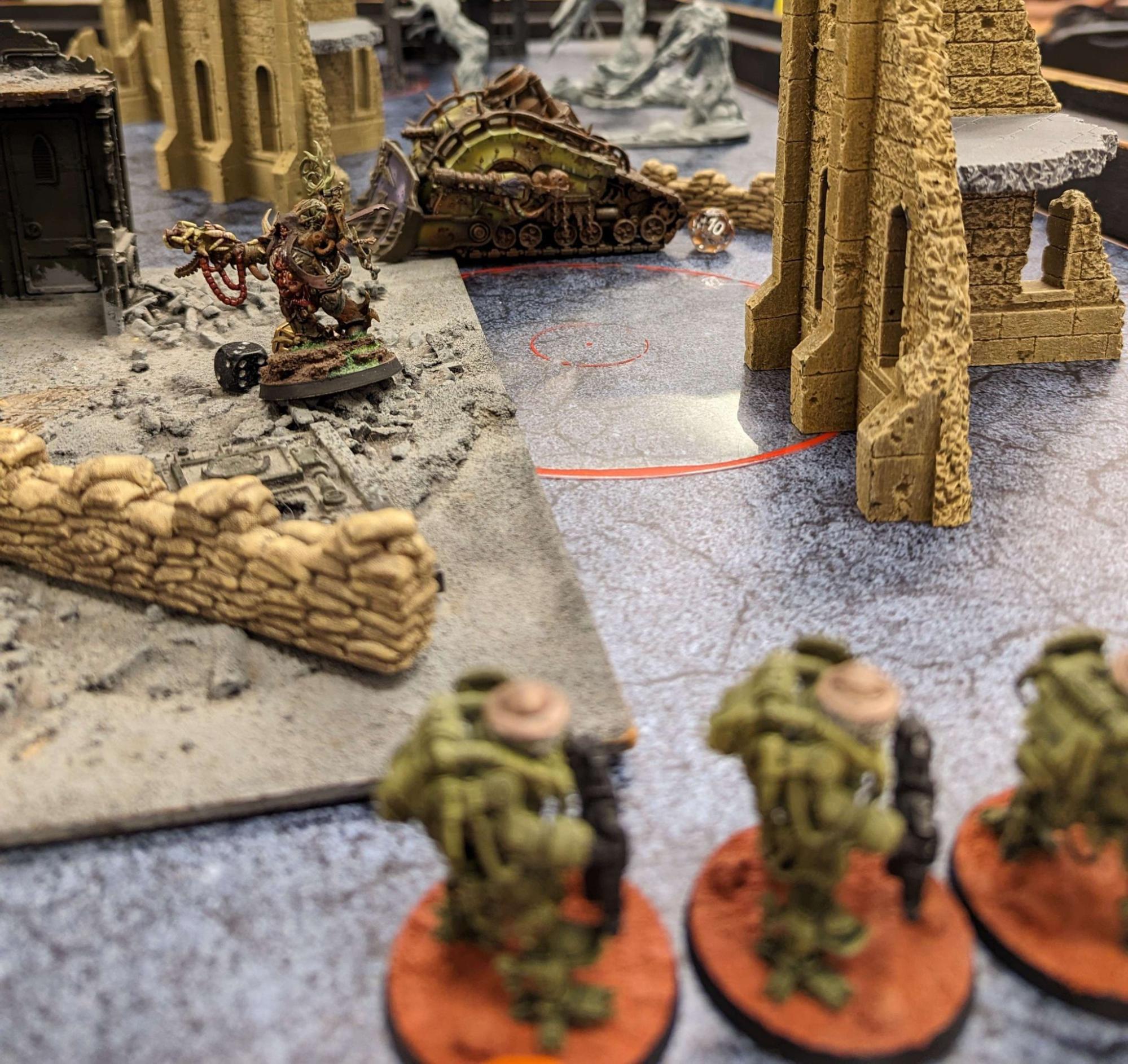 The eastern flank.As the battle went on, the losses started to pile up on the side of the Imperials. The Crimson Defenders were hit with the full force of the Daemons, their forms seemingly uncaring for the caliber of firepower the guard brought to bear.