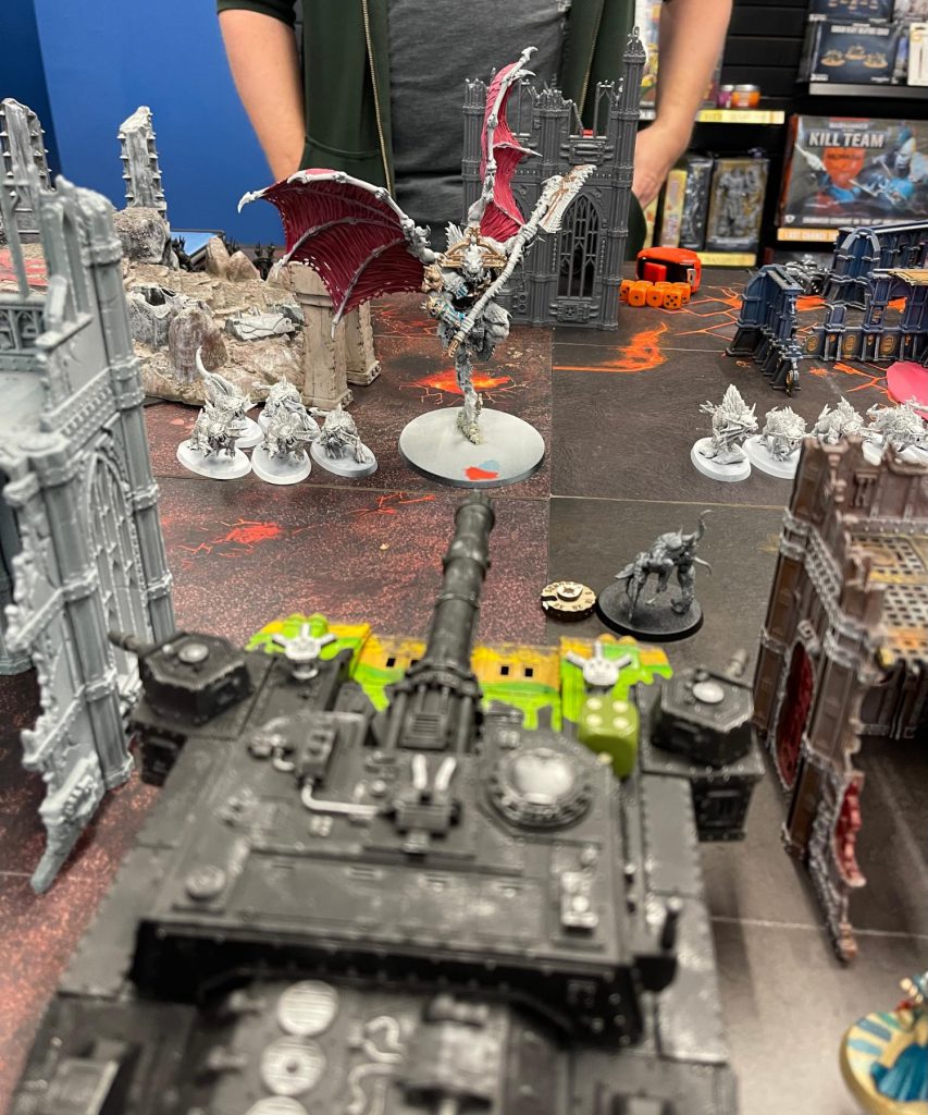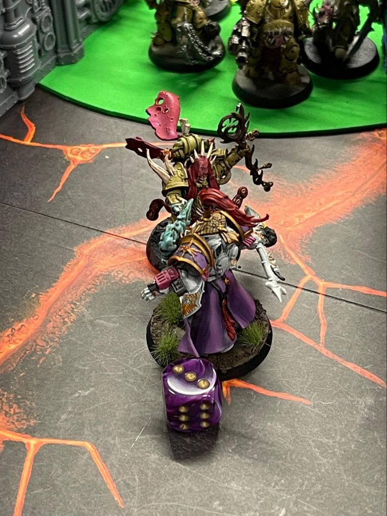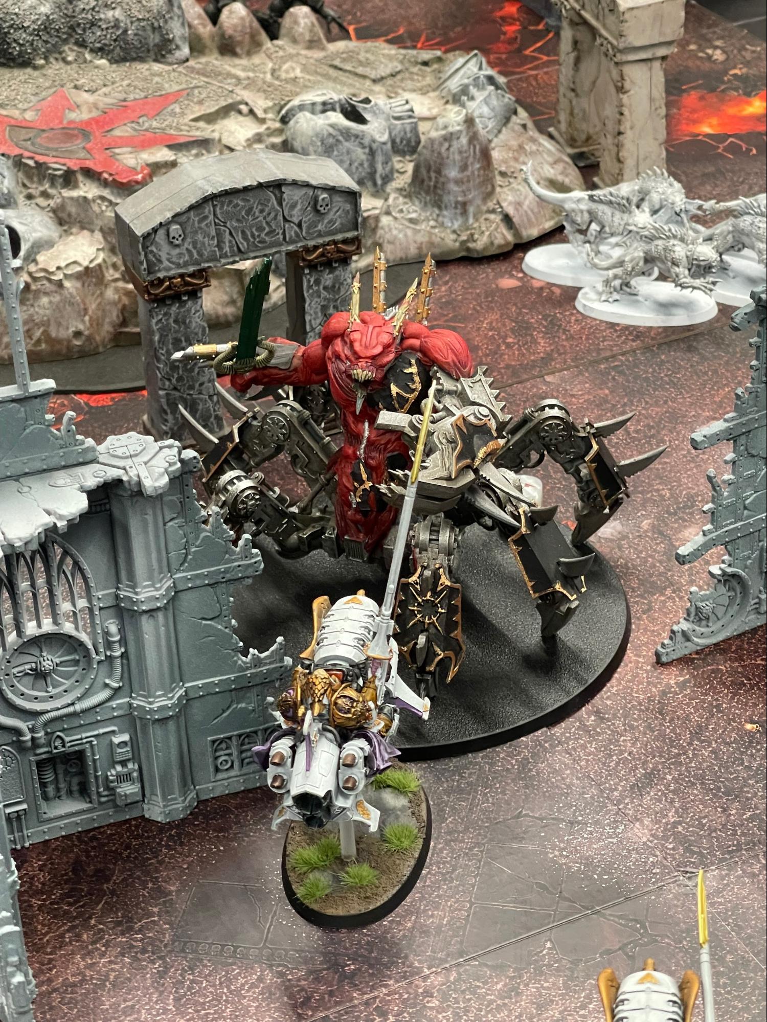 Shield Captain Virgil faces off with the Plaguecaster Wiltman.The two champions held nothing back, each fighting with fury unmatched. In the end, they laid each other low, however Virgil was recovered by his Custodes with a heartbeat.