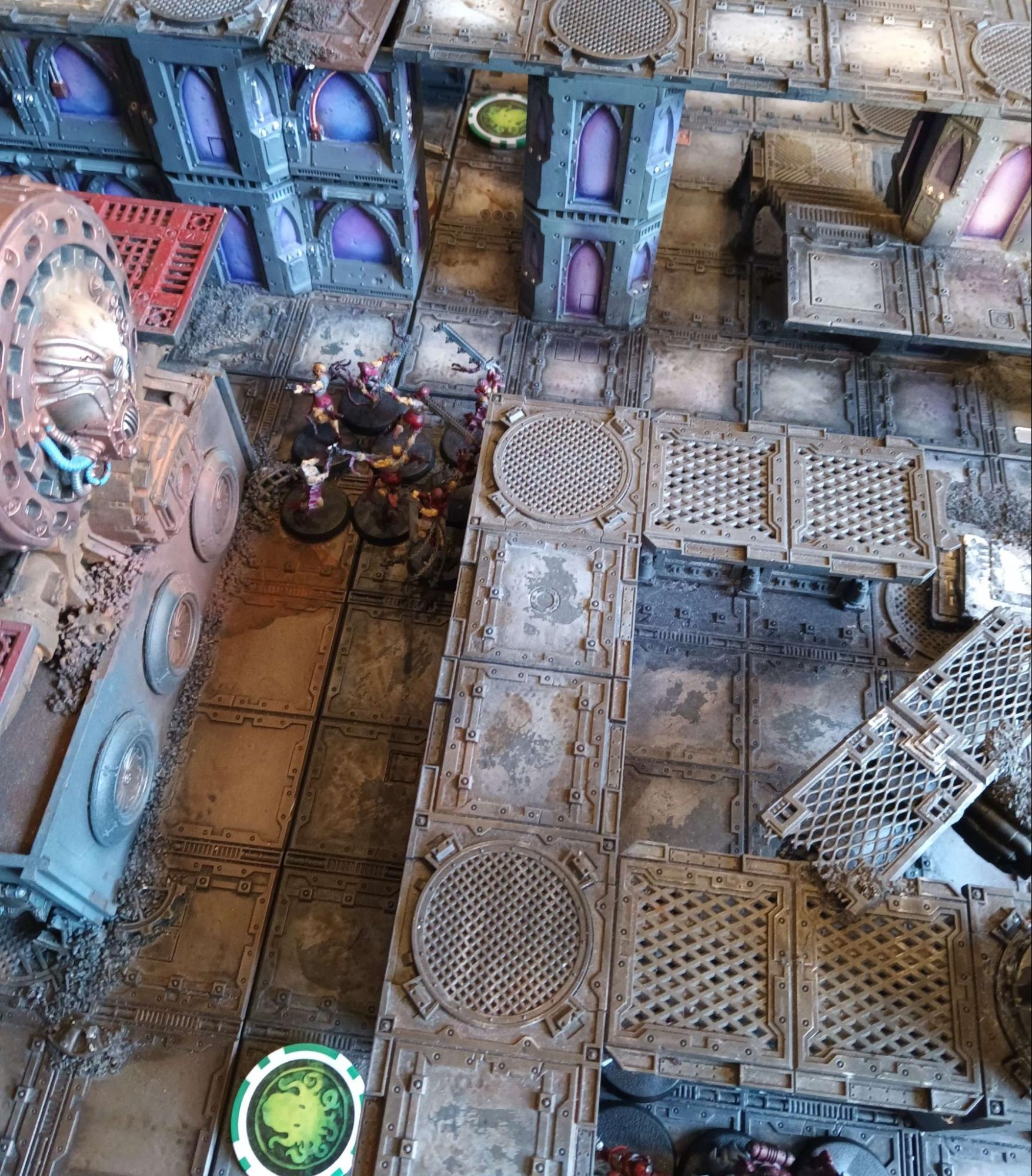 Unbeknownst to Malec, he had stumbled into a Votann warp core repair facility. Votann warp cores are normally heavily shielded in the hulls of their warships to keep the denizens of the warp away from the sensitive psychic material within. Tendrils of warp corruption from elsewhere on the station were drawn to this room the moment Malec cut the door and broke the warding seals; feeding off the warp cores like a babe seeking sustenance. Seconds after the shimmering warp tendrils reached the warp cores, reality tore open, obliterating Malec, his soul immediately consumed by the gods he worshiped so dearly. Space Station Pumilian is now under siege by the horrors of the warp. Tune in next week to see more of our regular Perplior updates!