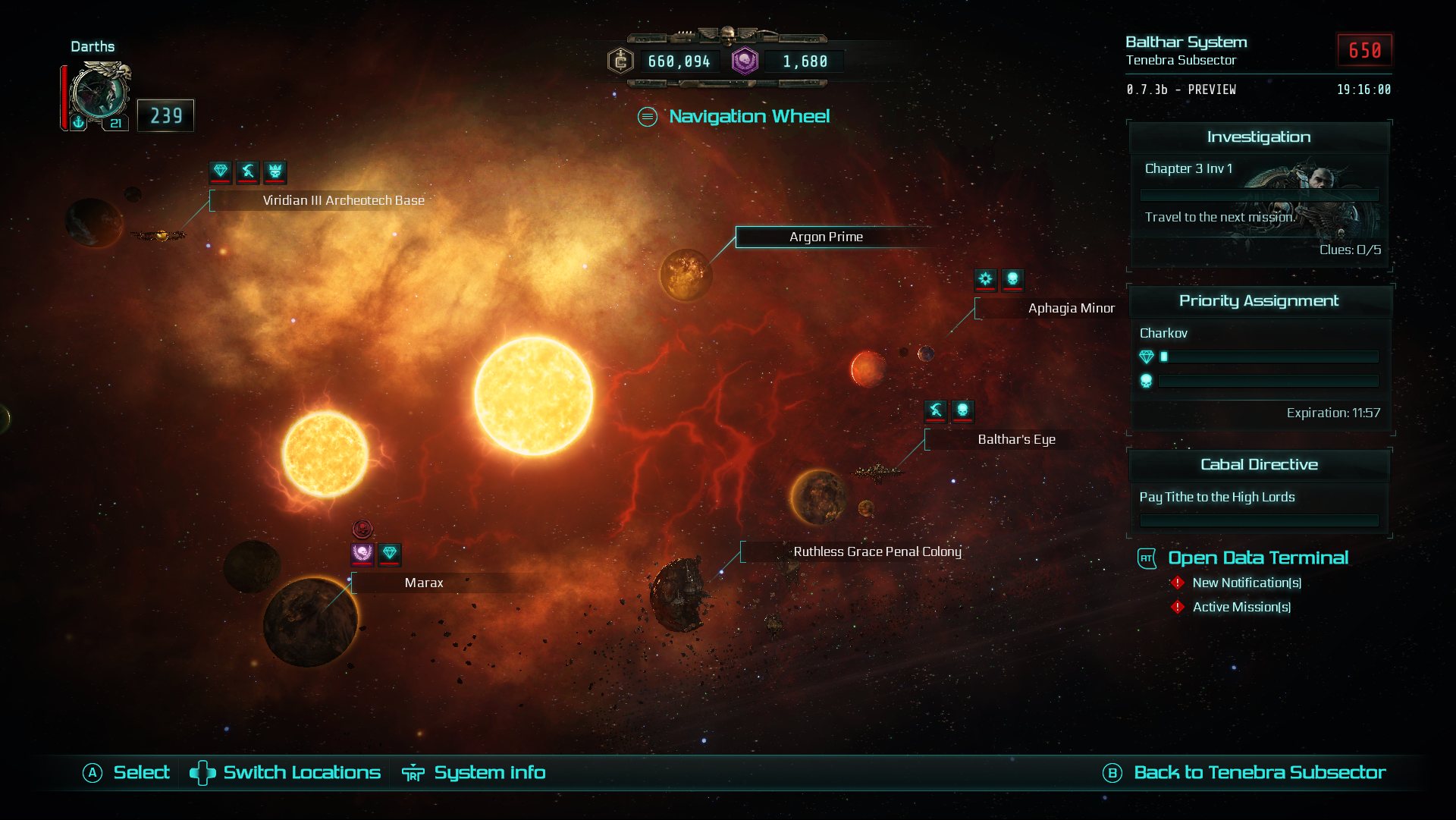 To the extent that it has one on the top level, Inquisitor’s main claim is that it’s an always-online experience with somewhat-seamless multiplayer on a variety of procedurally-generated maps. There are a dozen or so star systems in the game which range from low to high level play; each planet has an arbitrary number of missions at any given time, and completing those missions increases your reputation with the system. This means certain loot or stat rewards once thresholds are met, but it also means leaderboards: the player with the most reputation in a certain system gets a shout-out on the system select screen. Players can also apply additional difficulty modifiers to these procedurally-generated missions in order to increase the rewards they gain for completing them (along with increasing the difficulty in general), but a recurring problem is that the suggested mission level usually tells you very little about how hard a mission actually is -- that depends on what character class you’re playing, how you’re built, and whether the faction you’re fighting in the mission spawns any hard counters to what you’re playing. For instance, a level 17 melee crit Assassin might find a level 14 Purge mission (kill all enemies) against the Rebel Imperial Guard or Dark Eldar (Drukhari, now) much harder than they would against a level 17 Chaos Purge, due to the elite enemy spawns for the Guard and Dark Eldar being far more likely to be armored and ranged tanks with armored and ranged adds. Chaos, on the other hand, prefers to overwhelm with volume of tiny adds and high HP elites, which ranged Crusaders might find hard to handle given the ammo or overheat bars they have to manage for their ranged weapons.