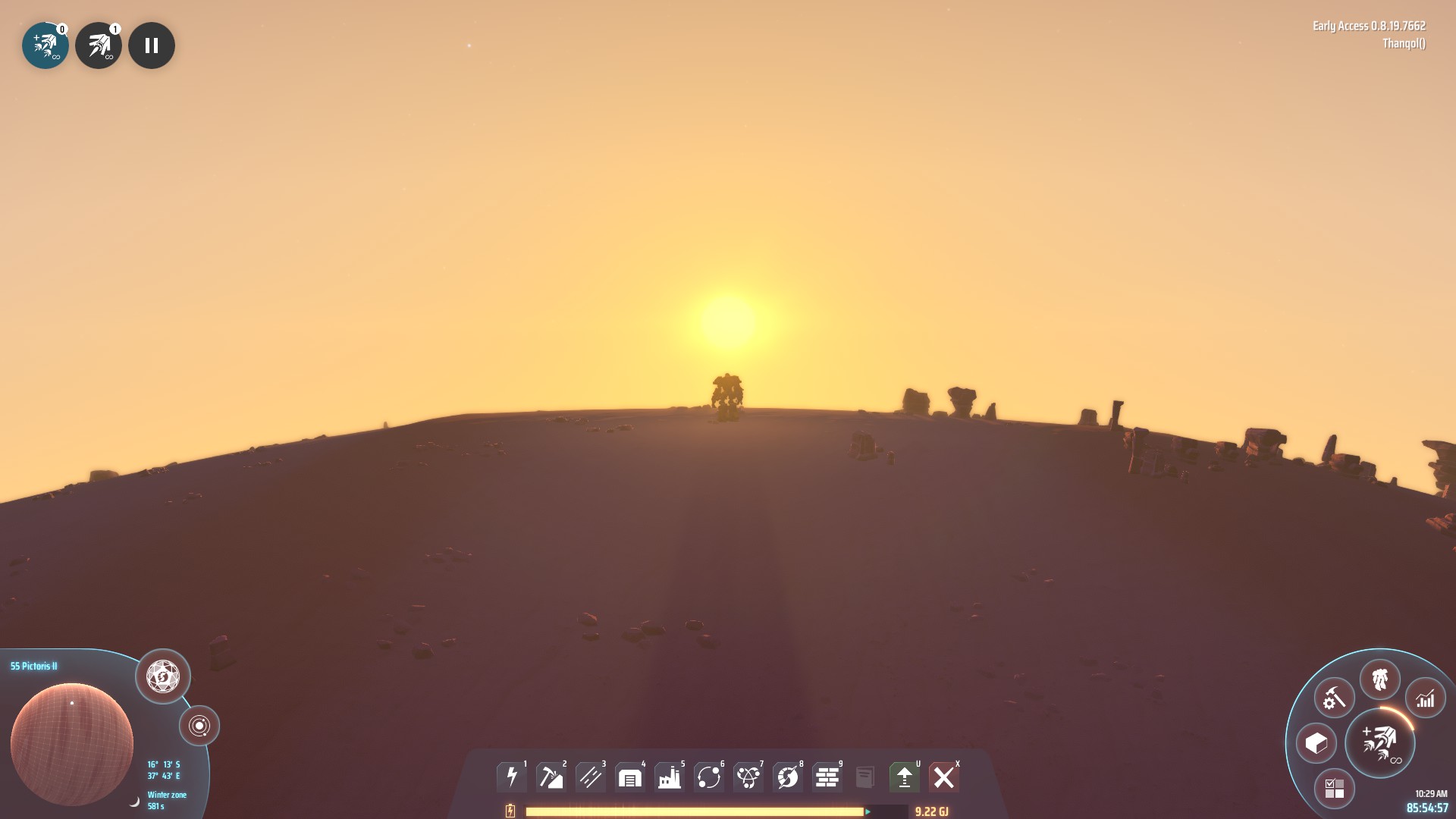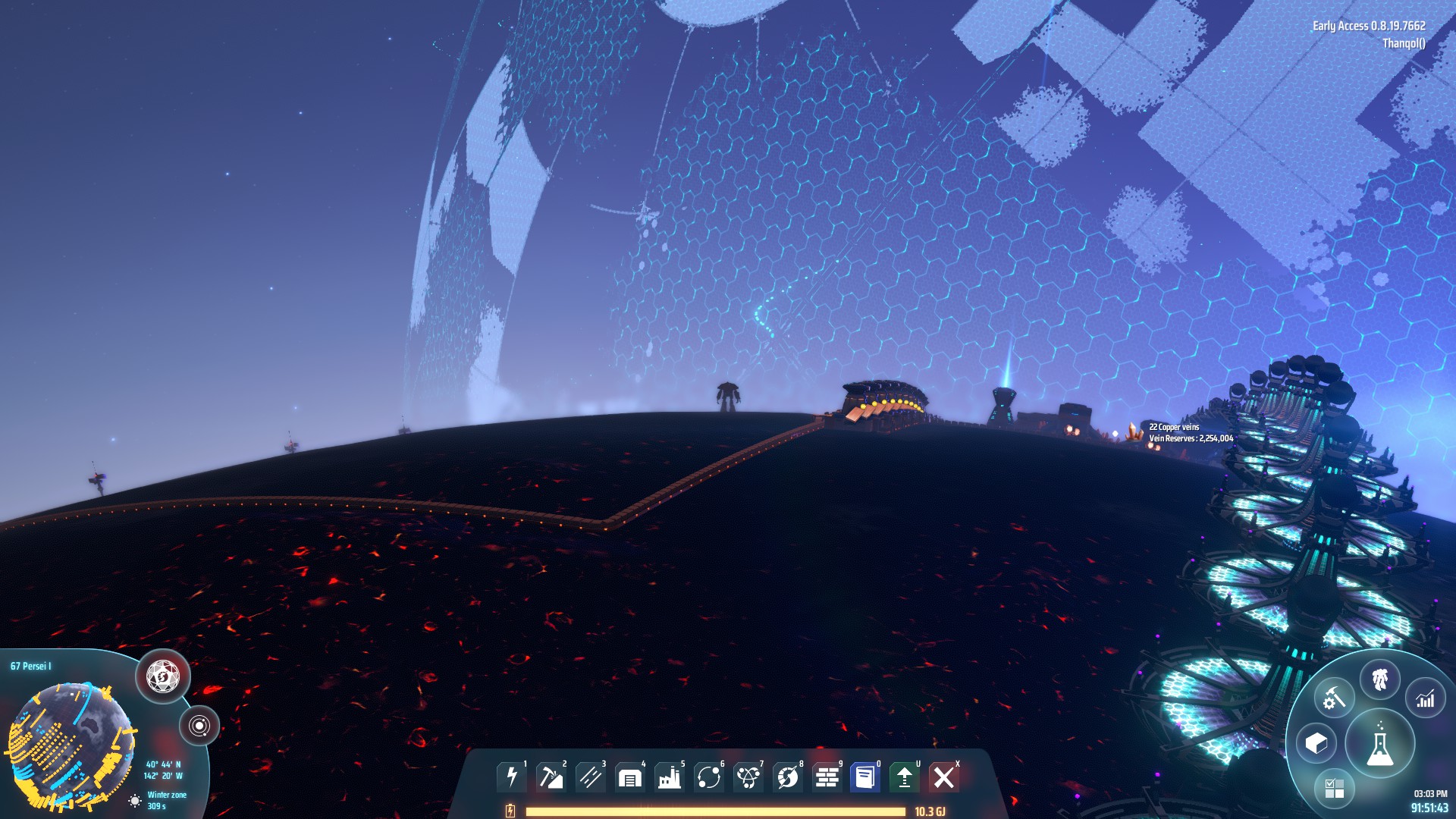 So what a relief it is to play Dyson Sphere Program after burning out on Factorio. The twist is simple, obvious even: There are no bugs. You start the game piloting a mecha that would have taken all the resources of an endgame Factorio complex to even construct. It would seem like a frictionless game except for the immensity of your task: single handedly construct a megastructure large enough to chain a sun.The early game of Dyson Sphere program plays similarly to Factorio. Sorting out your basic mining and refining, cludging together ugly little modules of science cubes in sprawling and haphazard little arrays. The other side of the planet seems an impossible distance and you're constantly harvesting wood to hurl into your engine's hungry mouth. But Dyson Sphere Program is a game of firsts. Eventually you'll hit a bottleneck and to proceed you need titanium ore which is not present on your starting planet. So you'll pack your inventory, do a last troubleshooting check on your industry lines, take a deep breath - and jump.