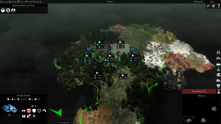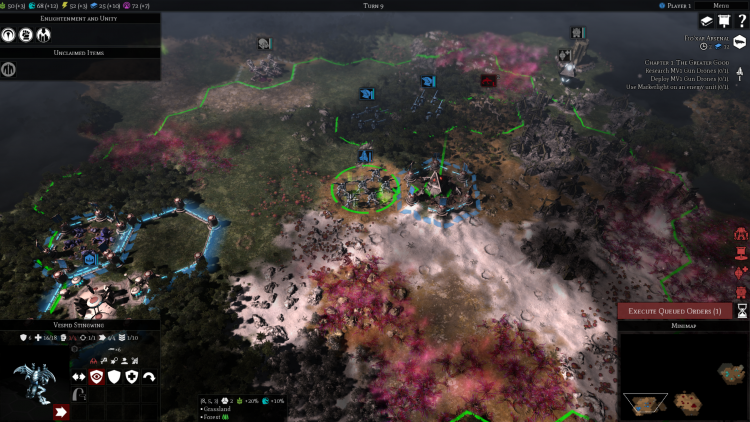 You’ll probably spend another 20 turns securing the surrounding area and slowly building up your main base; some factions build quicker than others, but the default experience -- and the one the T’au have -- is a main city that grows...very...very...slowly. There’s one production queue for buildings, and you can’t rush it. The surprises and growing pains you’ll have on these turns will mainly be attributable to walking into enemies in the fog of war, and running into enslaver neutrals that steal your units (killing them gets the units back, but they’re pretty hard to kill).
