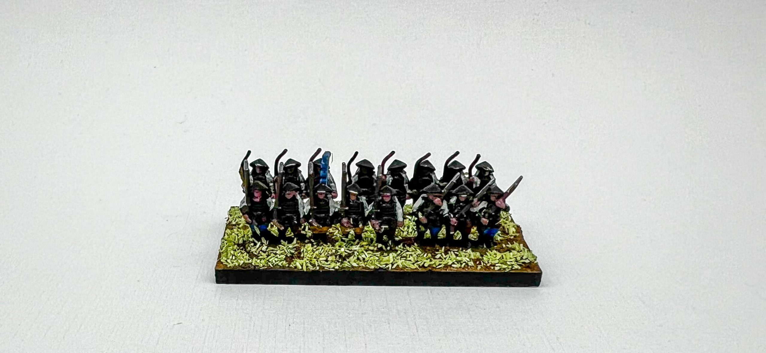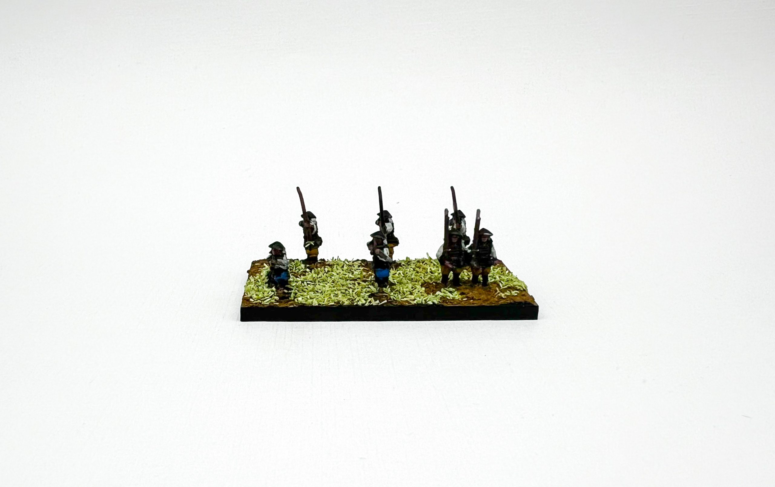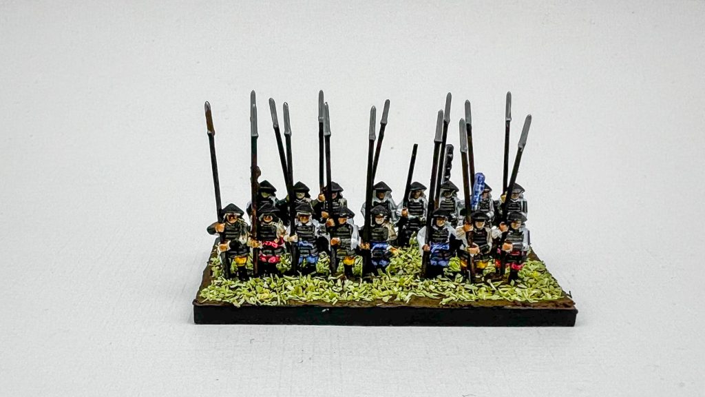 Wargames Atlantic Ashigaru. Credit: Matt JettFor the grass I used a bit of sawdust flock, because it was the smallest scale thing I had. I wouldn’t do this again, I don’t love the way it looks. This is my first kit of this scale, so if anyone has any good tips for basing let me know in the comments.