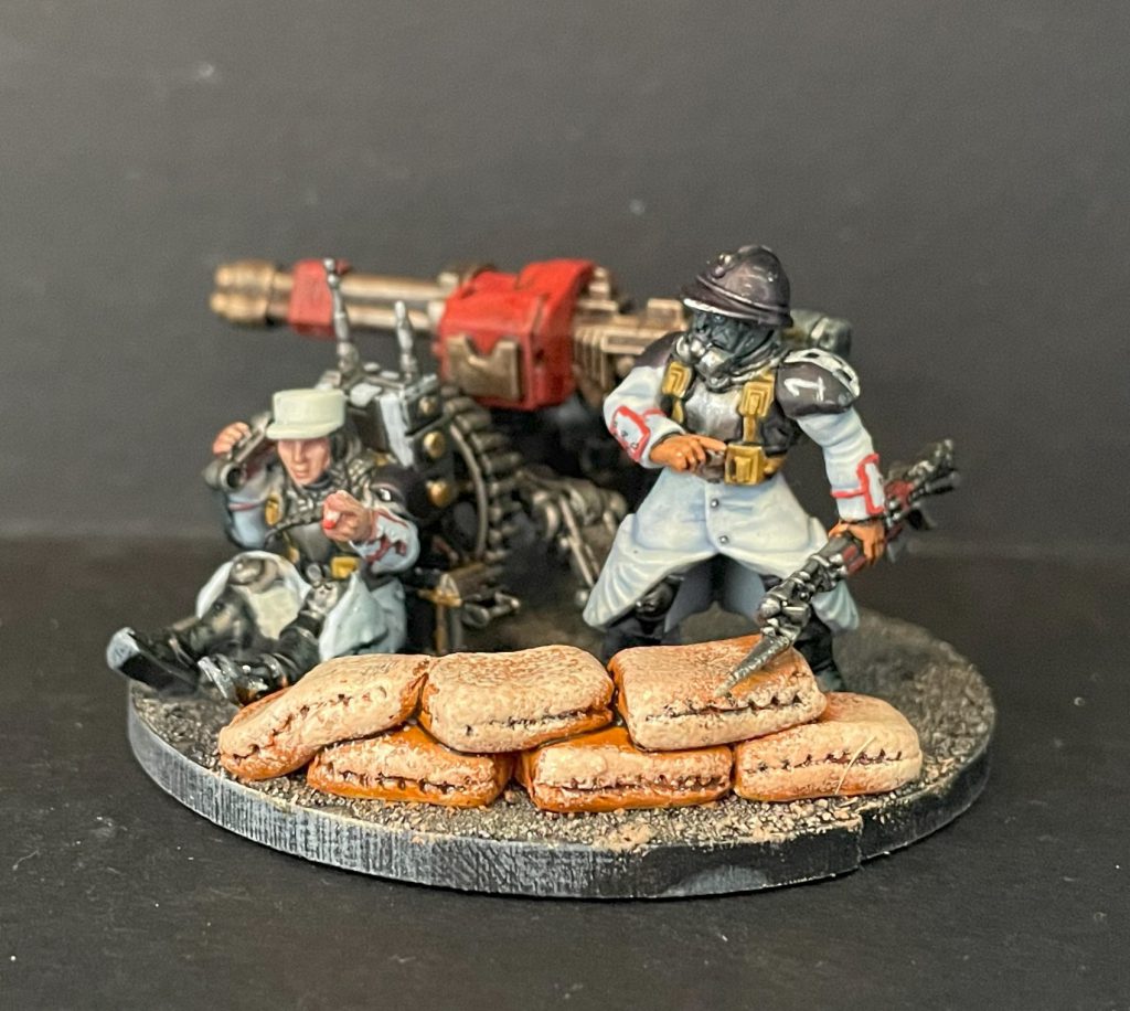 Where did you get those cigarettes from again? Those guys over there? Grognard Command, Credit LenoonThe lascannon, autocannon and mortar style weapons are all fairly conventional, mounting a heavy weapon on a tripod or wheeled carriage, giving us both types of "classic" Imperial Guard heavy weapons mounts. What I like about Wargames Atlantic kits though is that they'll sometimes just branch off and do something weird, and that's very much what we have with the fourth weapon option - the ball-turret.