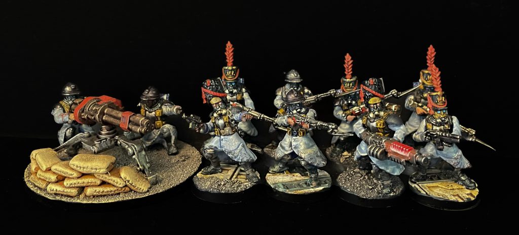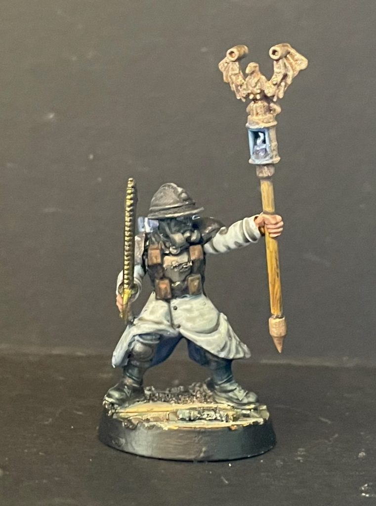 Eagle Bearer, Grognard Command, Credit: LenoonThat cross-compatability feels like it should be a given, but as other manufacturers go further and further down the “leg A can only go with body B because leg A also has the face attached to it via a big stick” road, it’s nice to see. It opens up a wider range of options for the original Grognard kit too - particularly in adding additional weapons for Sergeants and other leader models and kneeling legs for aiming/sniping models. I’ve used the kneeling legs (and Necromunda heads) to fill out a counts-as-ratling-snipers unit as you can see below.