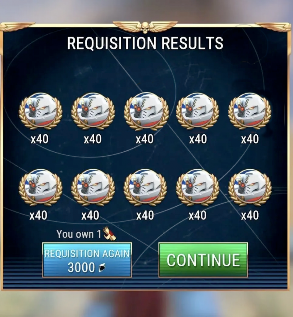 It would be easy to say Tacticus is a "gacha game," but having familiarized myself a bit more thoroughly with that particular ecosystem, I'm not sure that the taxonomy fits here. Requisitions exist, but they're not really the primary way of acquiring... anything. Most characters are obtained by patiently farming them, either in missions where their shards drop as loot, or in exchange for non-real-money-convertible currency in one of the game's many storefronts. Requisitions are kind of exciting, but veteran players don't put much stock in them: they're simply too unreliable, and the odds are too bad, to really depend on them for anything. There's no "pity timer" and there's no duplicate protection, so even if you do unlock a character it could be one you already have (an outcome which, of course, becomes more likely the longer you play). That's not worthless - the extra converts into a big pile of shards, which are useful for promoting your troops - but it's not exactly thrilling.