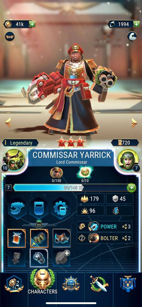 That's part of the game's appeal, for some. I'm an inveterate bar-filler; my stupid, lumpy brain gives me dopamine whenever I make a bar get bigger, and when that bar gets all the way big, resets back down to 0 and changes color or something? Ah, sweet ambrosia. Tacticus has a lot of that: the game is expertly designed to keep you progressing, so you never run dry. You run into bottlenecks eventually, but those shift around: early on you’re richer than Scrooge McDuck but starved on Orbs, while later on you’ve got more colorful orbs than a Christmas tree but you’re skint broke.