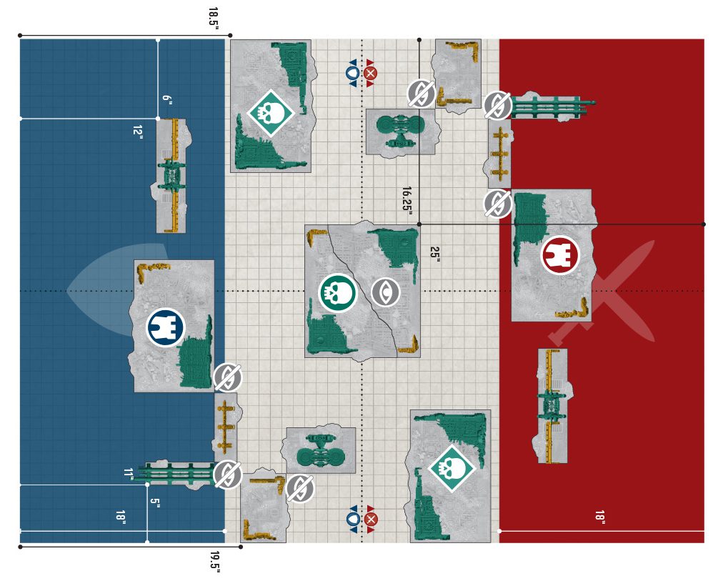 But then we have those layouts. Let's talk about those for a second. One of my biggest concerns with having separate layouts for every mission combination is that, at events, players will need to set up terrain before every game. That's not a huge problem if the process is fast and you have three-hour rounds, but on anything less it's going to eat up 10+ minutes, especially if the layouts are weird. Let's see what we ended up with: