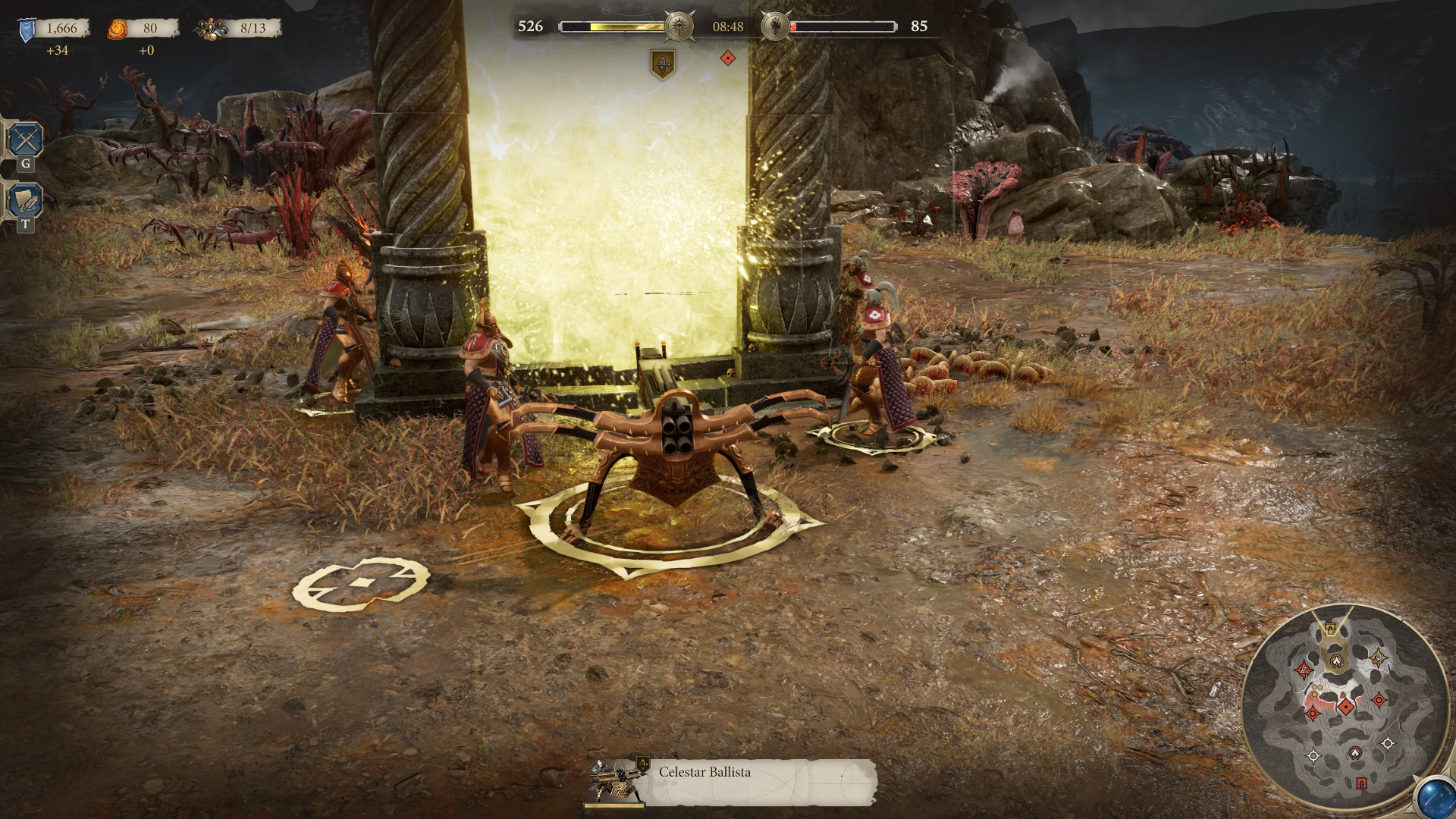Ring Around the RealmgateI expect to run into bugs in any game at release, and I ran into a few here. There seems to be a problem with artillery across the board. My Celestar Ballistas would get stuck as they came onto the field, their weapons immobile as the crew danced in circles around my realmgate playing ring around the rosie. Similarly, my Kruleboyz Killbow would slide away on its own volition, leaving the gunner behind. One or two maps have some chokepoints where units will just get stuck, and the pathfinding is very good at finding these bottlenecks. I would randomly get a bug where my keyboard stopped being responsive and the camera got jerky. This was fixed by opening and closing a menu or restarting the game. Most of these are inconveniences that can be played around, but that last one can prove to be deeply frustrating when you're in a key battle.