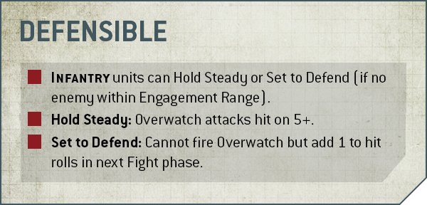Credit: Warhammer CommunityDefensible terrain gives INFANTRY units the option of either Holding Steady or Setting to Defend.