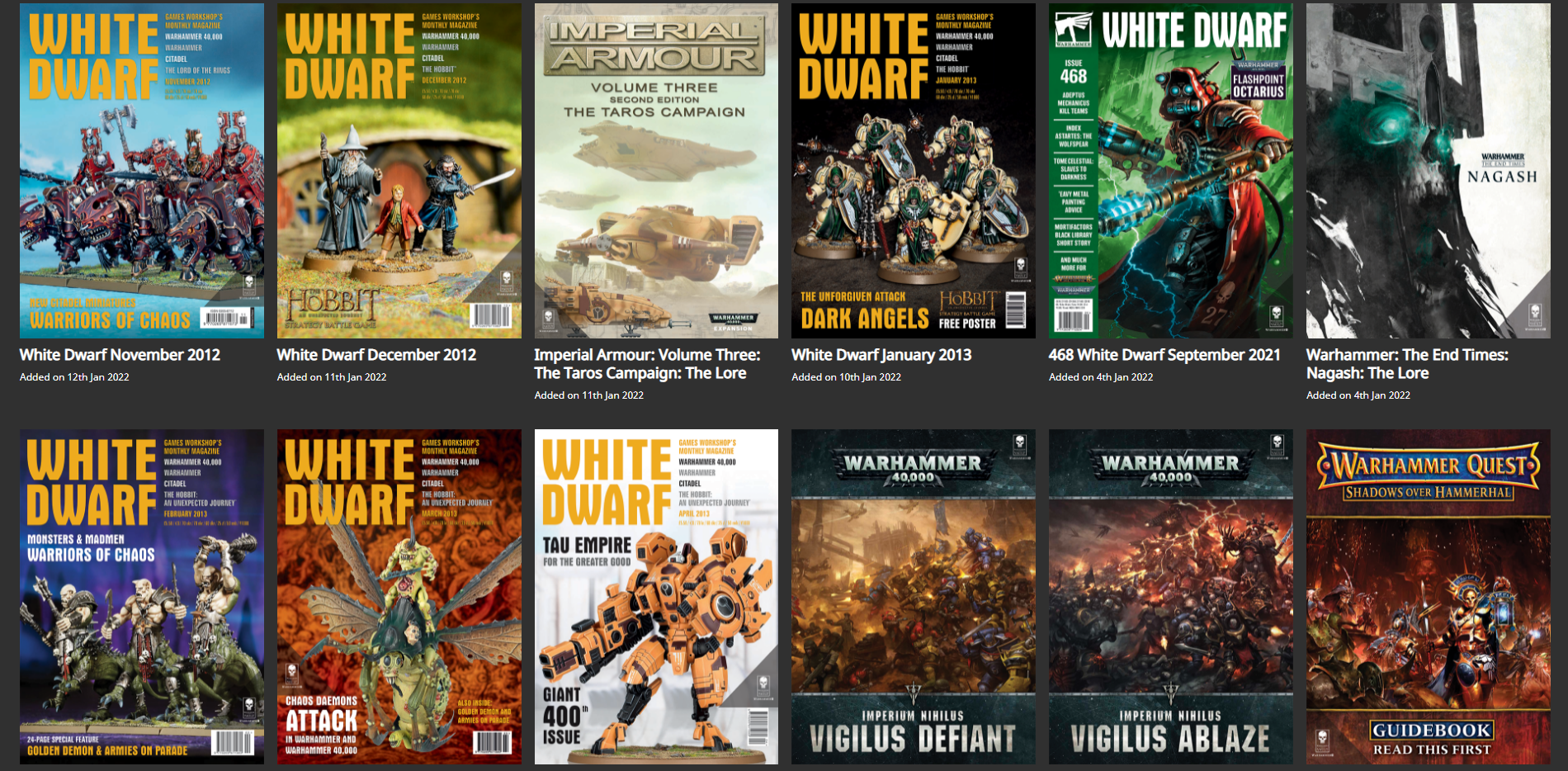 This is weirdly one of the more compelling things here for me. I love reading old Whites Dwarf, codices, and so on, and have a sizeable collection thereof. Including what are essentially watermarked and non-downloadable .PDFs of old publications is pretty cool to me. A lot of these old products are curiosities and not really worth much on their own to the majority of warhams, but they're firmly playing to whatever seat I'm sitting in. I do wish there was a dedicated app for these though; having to open a browser window on my desktop or mobile device and browse through them is a slightly clunky experience. It also means you don't have a bookmark feature, which is annoying. Still, I'm glad they keep adding stuff every week, even if for every compelling addition (Warhammer End Times books! Imperial Armour!) there's a few years of White Dwarf: Less Good Edition. They're also just kinda jumbled all up in there without any sort of categories, so it's like digital dumpster diving right now if you want to find something specific.