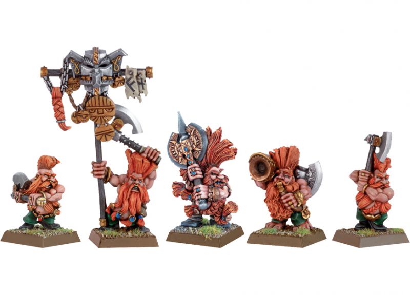 The Army Composition is pretty much what you'd expect. In Characters we have Ungrim, 0-1 Daemon Slayers per 1000pts and 0-2 Dragon Slayers per unit of actual Slayers. In core (which is only 20%!) are Slayers. Special, which can be up to 50% of your list, includes 0-1 Brotherhood of Grimnir the new unit you'll probably always be taking, and 0-4 Doomseekers per Daemon Slayer or Dragon Slayer in your army, which while cool does force you to take a variety of slayers in your force. Rare units are 0-1 Goblin-Hewers per 1000pts and 0-1 Dwarf Cart (only the Bugman's variety) per 1000pts. Finally, you can include a unit of Rangers as Mercenaries to flesh out your force and provide a little bit of something that isn't naked and shouty with orange hair.