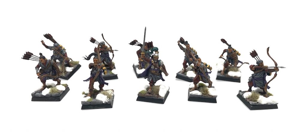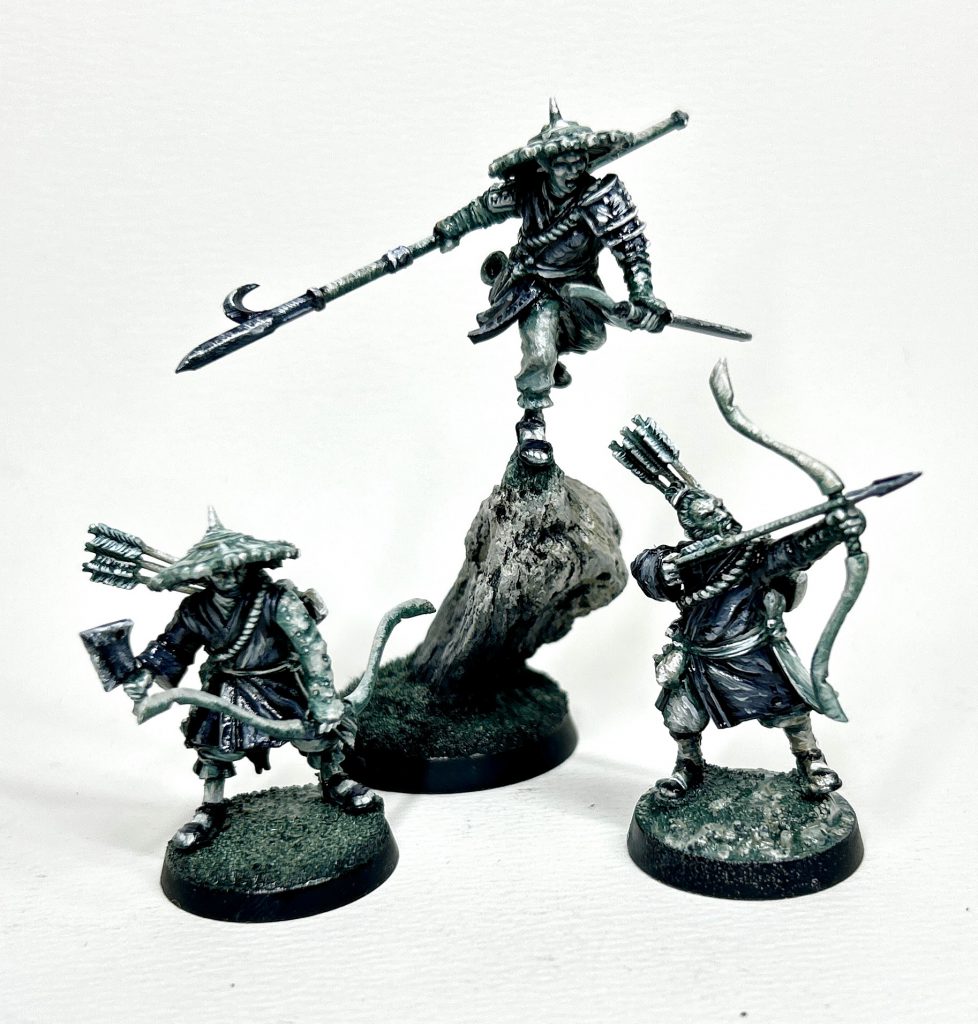 The only painting I’ve done on these is to continue the ‘Twilight’ scheme I tested on the Jade Warriors Captain. Kinda love the muted and restricted palette with extreme contrast. Not sure I’d do it for a whole army, but fun for a warband. Now that I have a good few of these guys I think they’d make a fine Frostgrave Warband (one of my favourite skirmish games) and I’m going to get them all painted up for that.